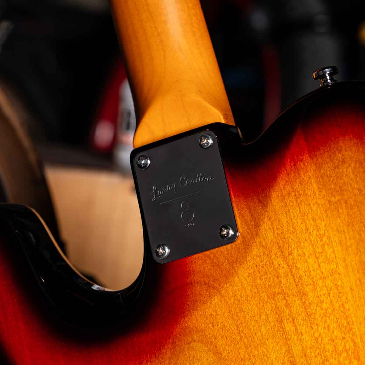 The chambered, ‘Thinline’ body of the Larry Carlton T7TV features a single F hole, which brings a fuller resonance to the wonderful sound characteristics of a T-style guitar. This, along with the hardware configuration, helps to bring a wider range and a more defined sound to the instrument.