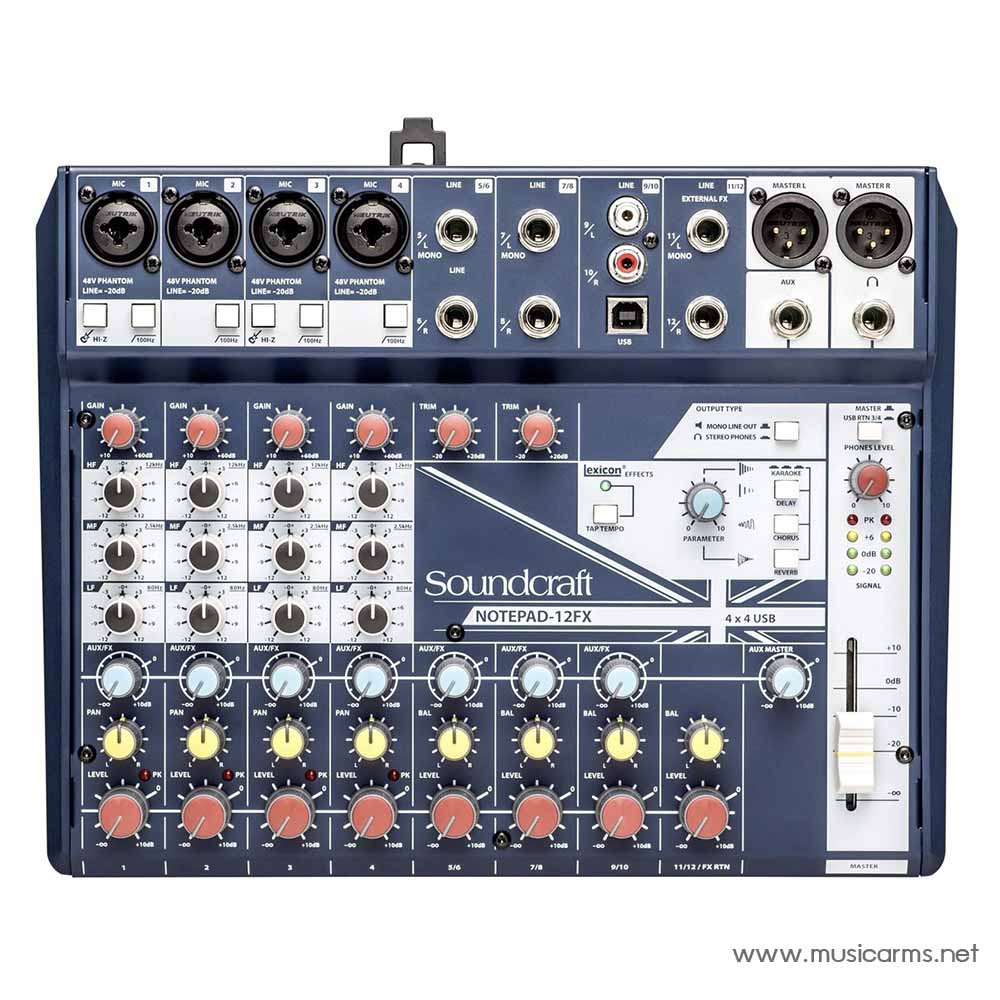 Soundcraft Notepad-12FX Analog USB Mixer บรรจุส่วนประกอบคุณภาพสูง, Lexicon DSP และปรีแอมป์ระดับตำนานไว้ในแพ็คเกจขนาดเล็กที่ใช้งานง่าย ส่วนประกอบอะนาล็อกในตำนานได้รับการเสริมกำลังด้วยการเชื่อมต่อและการประมวลผลดิจิทัลสมัยใหม่ สามารถบันทึกลงใน DAW ใด ๆ ได้อย่างง่ายดายโดยเชื่อมต่อคอมพิวเตอร์ของคุณเข้ากับพอร์ต USB Notepad Mixer ทำหน้าที่เป็นอินเทอร์เฟซ USB สองเท่า จึงเหมาะอย่างยิ่งสำหรับการสร้างพอดแคสต์หรือใช้ในสตูดิโอโปรเจ็กต์ขนาดเล็ก
