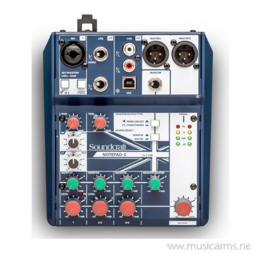 The Soundcraft Notepad-5 is a compact 5-channel analog mixer inspired by the Soundcraft Signature Series.