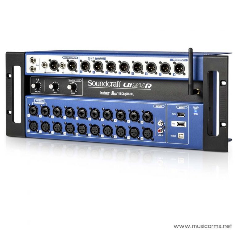 Soundcraft Ui24R Digital Rack Mixer มิกเซอร์ 24 แชนเนลพร้อมสเตจบ็อกซ์ในตัวและ DSP มอบเสียงที่ดีที่สุดให้กับผู้ฟังทุกคน ได้รับการออกแบบทั้งแบบสดและแบบสตูดิโอ ระบบบันทึก Ui24R ให้ I/O ที่ยืดหยุ่นพร้อมคุณภาพเสียงที่ยอดเยี่ยมและการควบคุมแบบไร้สายที่ใช้งานง่าย เพิ่มความอเนกประสงค์ ระบบบันทึกเสียง Soundcraft Ui24R ยังสามารถใช้เป็นสเตจบ็อกซ์ ควบคุมแบบไร้สายได้สูงสุด 10 อุปกรณ์ผ่านอินเตอร์เนต หรือการเชื่อมต่อ Wi-Fi ดูอัลแบนด์ในตัว Wi-Fi ในตัวช่วยให้คุณควบคุมการบันทึกแบบหลายแทร็กและความสามารถในการมิกซ์แบบไร้สาย โดยรวมแล้ว Ui24R Recording Interface มี 24 อินพุตพร้อมกัน รวมถึง 10 คอมโบ ¼’’ TRS/XLR, 10 XLR, 2 line level และ 2 อินพุตดิจิตอลเพื่อความคล่องตัวสูงสุด