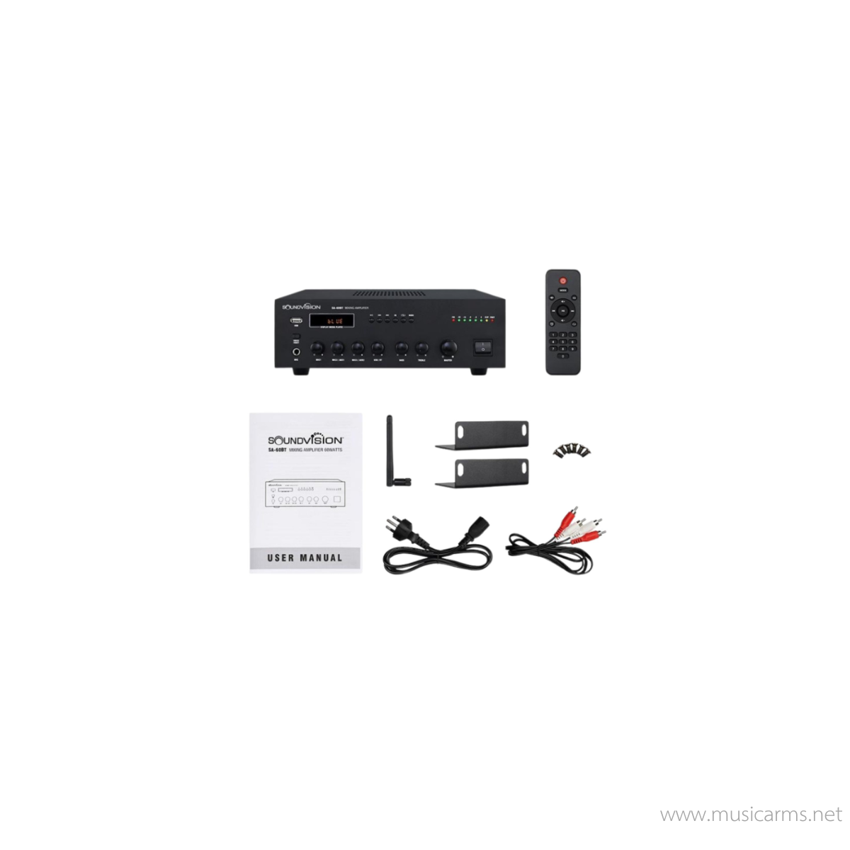 แอมพลิฟายเออร์ 5 แชนแนล Soundvision SA-60BT ขนาด 60 วัตต์ รองรับการต่อแบบ โอห์ม และ Volte line มาพร้อมบลูทูธในตัว ได้รับการออกแบบให้สะดวกสำหรับการติดตั้ง PA ขนาดเล็ก เหมาะสมสำหรับงานระบบประกาศ และ BGM