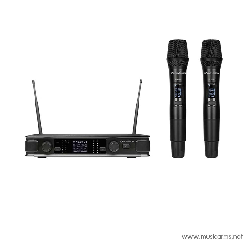 Soundvision SU-850DA ไมค์ลอย มือถือคู่ ย่าน UHF คลื่นความถี่ 694.4 – 702.7 MHz ตามความถี่ในประเทศไทย ให้สัญญาณเสียงที่ชัดเจนโดยมีระยะการใช้งานสูงสุดที่ 60 เมตร (ขึ้นอยู่กับสิ่งกีดขวาง) สามารถตั้งค่าล่วงหน้าได้ถึง 2 x 84 แชนแนล มีจอแสดงผล TFT เพื่อระบุความถี่, ระดับแบตเตอรี่, ระดับเสียง, การตั้งค่าช่องและเมนู และไฟ LED แสดงสถานะสัญญาณ AF / RF บนเครื่องรับ เทคโนโลยีนำร่อง ID ดิจิตอล 16 บิตที่ไม่เหมือนใคร ไม่มีการรบกวนสัญญาณรบกวนแม้ความถี่เดียวกัน จึงมั่นใจได้ว่าทุกงานเวทีขนาดใหญ่และขนาดเล็ก ความบันเทิงด้านดนตรีในคลับ การประชุม การฝึกอบรม สุนทรพจน์ และคาราโอเกะจะเป็นไปอย่างราบรื่น