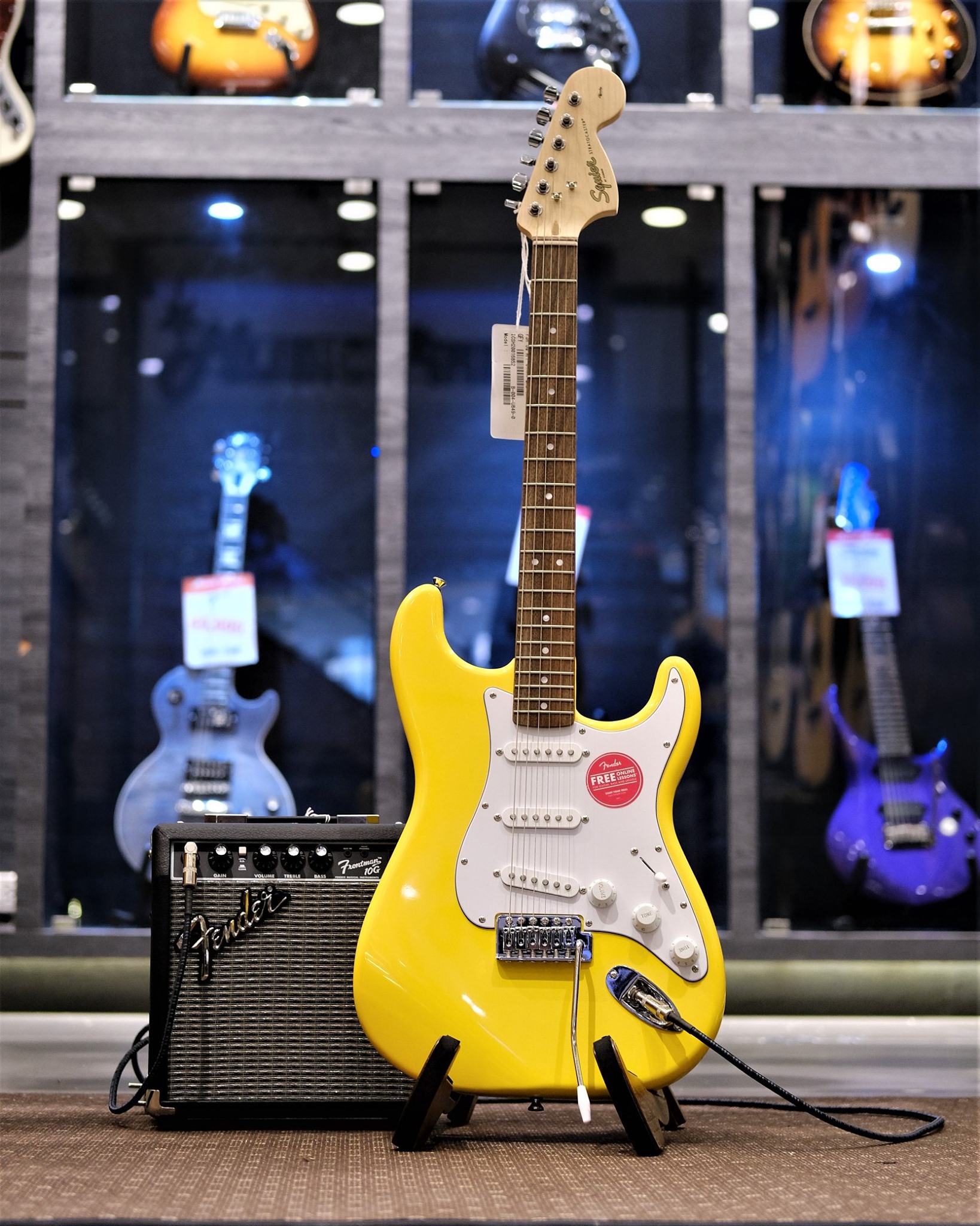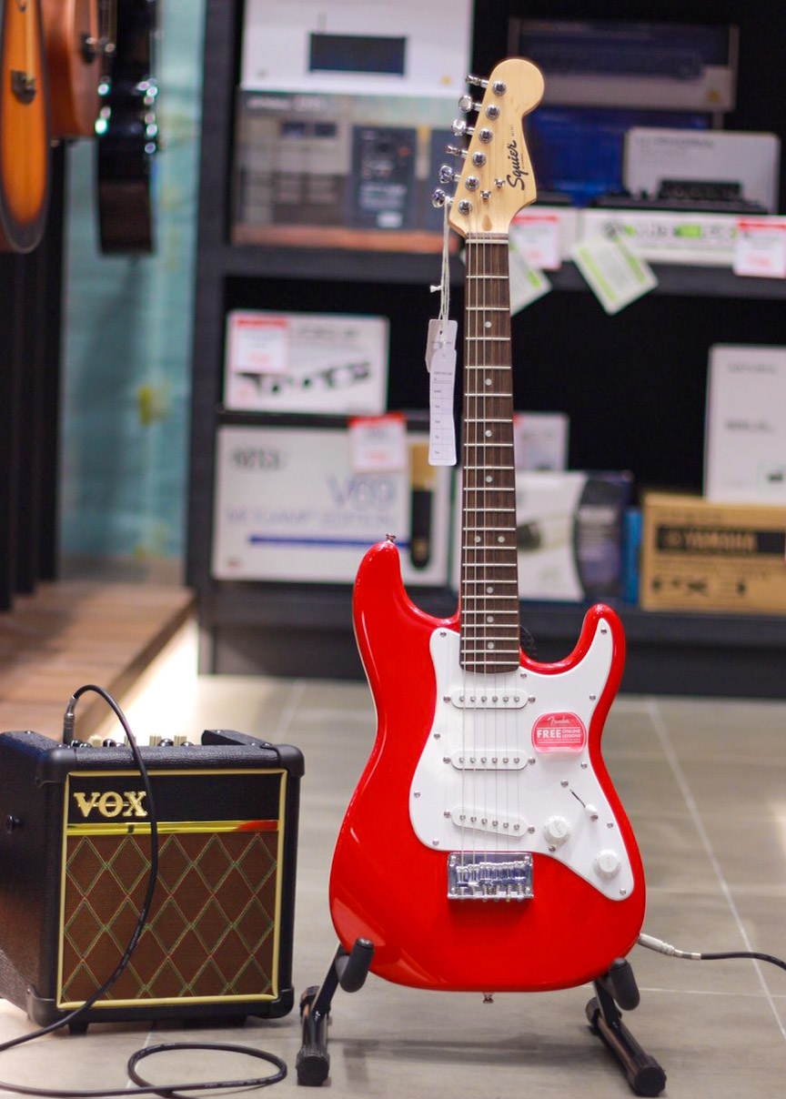 The best value available today in electric guitar design, Squier Affinity Series guitars deliver solid sound with slick style. The Affinity Series Stratocaster combines the classic features that made the Stratocaster a rock ‘n’ roll favorite: sonic flexibility, authentic Fender sound, vintage style and eye-catching finishes.