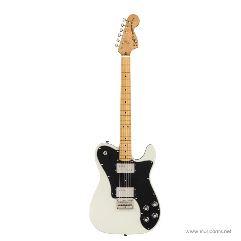 Squier Classic Vibe 70s Telecaster Deluxe กีต้าร์ดีไซด์ยุคปี 70 มาในรูปแบบ Deluxe บอดี้ไม้ป็อปลาร์น้ำหนักเบาและให้เสียงกลางดี คอและฟิงเกอร์บอร์ดเมเปิ้ลเสียงเด้งๆในสไตล์ Tele ส่วนปิ๊กอัพนั้นเป็นรุ่น Fender Designed Wide Range Humbucking ทั้งสองตำแหน่ง ซาวด์ค่อนข้างกว้างหลากหลาย ตอบโจทย์ดนตรีแทบทุกแนว ใครที่ชอบกีต้าร์วินเทจแบบปีเก่าๆน่าจะชื่นชอบรุ่นนี้อย่างมาก