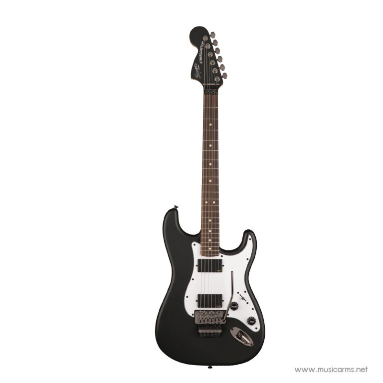 Player-friendly features like a slim “C”-shaped maple neck give this guitar a slick, smooth feel, while the 12” fingerboard radius and narrow-tall frets are ideal for speed and effortless bends. A dual-locking Floyd Rose® tremolo system invites the most extreme vibrato by maintaining reliable tuning stability. The dual Squier active humbucking pickups boast hot output for powerful tones perfect for crunchy rhythms and soaring solos. Premium styling cues include black chrome hardware and an eye-catching matching painted reverse headstock that’s sure to turn heads.