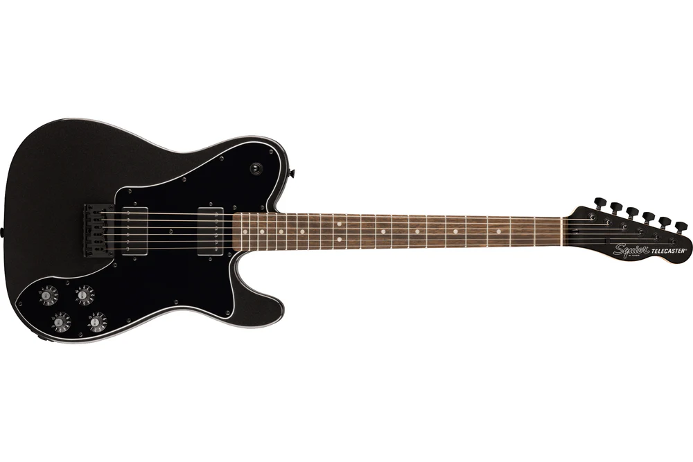 The Squier FSR Affinity Series Telecaster Deluxe Metallic Black Limited Edition is an Affinity Telecaster remastered from a legendary Fender model. It features a soft “C”-shaped maple neck for strength and a smooth modern feel, with a classic body shape that’s light and easy to play while still delivering the tone and quality expected from Fender. Its string-through-body hardtail bridge ensures reliable tuning and intonation and makes restringing simple.