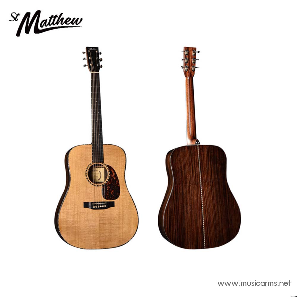 St.Matthew D-28 Grand Deluxe กีตาร์ซีรี่ส์ 28 Grand Deluxe ที่ได้แรงบันดาลใจจาก 28 Series อันโด่งดัง โดยจะมีความพิเศษที่เป็นไม้แท้ทั้งตัว All Solid คล้ายกับซีรี่ส์ 18 แต่จะใช้ไม้แบบ Torrefied ที่ส่วนท็อปโซลิด หรือรู้จักกันในชื่อ Aged Tone คือการนำไม้ไปอบในอุณหภูมิที่เหมาะสม ไล่ความชื้น น้ำตาล ยางไม้และสารระเหยต่างๆ เพื่่อให้ไม้มีสภาพราวกับผ่านการเล่นมาเป็นเวลานาน จึงมีโทนเสียงที่ “เปิด” และเป็นธรรรมชาติมากกว่าไม้ใหม่ๆ จะได้เสียงนุ่มนวลโดยไม่ต้องรอ ด้านหลังและด้านข้างไม้ โซลิดอินเดียนโรสวูด มาพร้อมภาคไฟฟ้าของ St.Matthew คุณภาพเสียงออกงานสบายๆ เป็นอีกรุ่น All Solid ที่ออกมาตอบโจทย์ได้ดีในเรื่องคุณภาพและราคา