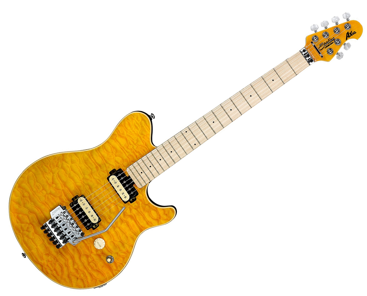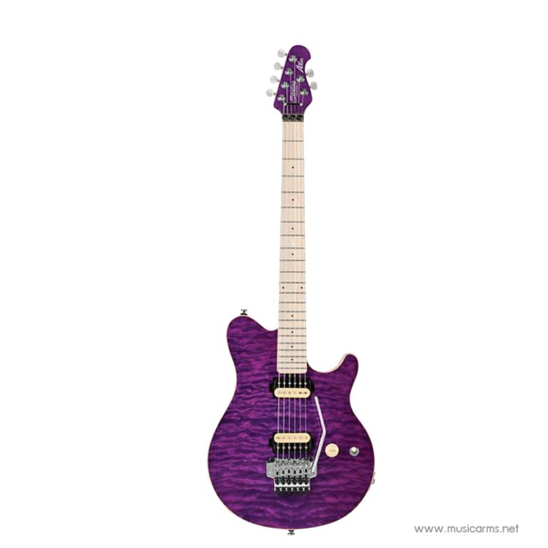 Sterling AX40D กีต้าร์ซีรี่ย์ใหม่ ออกแบบมาได้สวยงาม ไม้หน้าเป็น Quilt Maple ลวดลายสวยงาม ผสมกับไม้เบสวู้ดได้เสียงที่ลงตัว คอไม้เมเปิ้ลให้เสียงเด้งชัด ตัวปิ๊กอัพรุ่น DiMarzio AXIS Music Man เสียงพุ่งแรงเป็นเอกลักษณ์ บริดจ์แบบ Double Locking ใส่คันโยกเป็นลูกเล่นเพิ่มเติมได้ สวิทช์ปิ๊กอัพปรับ 3 ทาง วัสดุคัดเกรดมาอย่างดีชุบโครเมี่ยมให้สวยงาม เป็นอีกหนึ่งรุ่นที่ทาง Sterling คำนึงถึงการใช้งานกัยราคาเบาๆ
