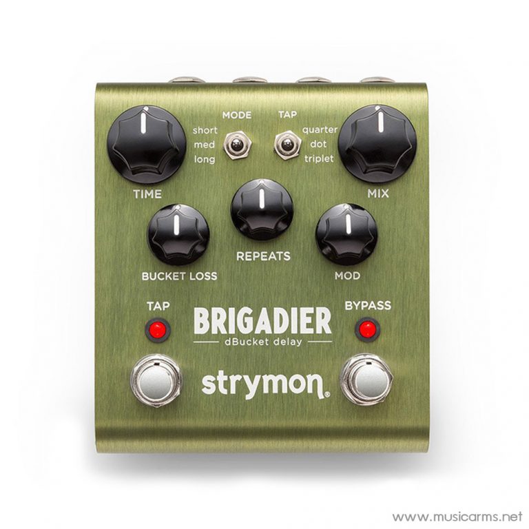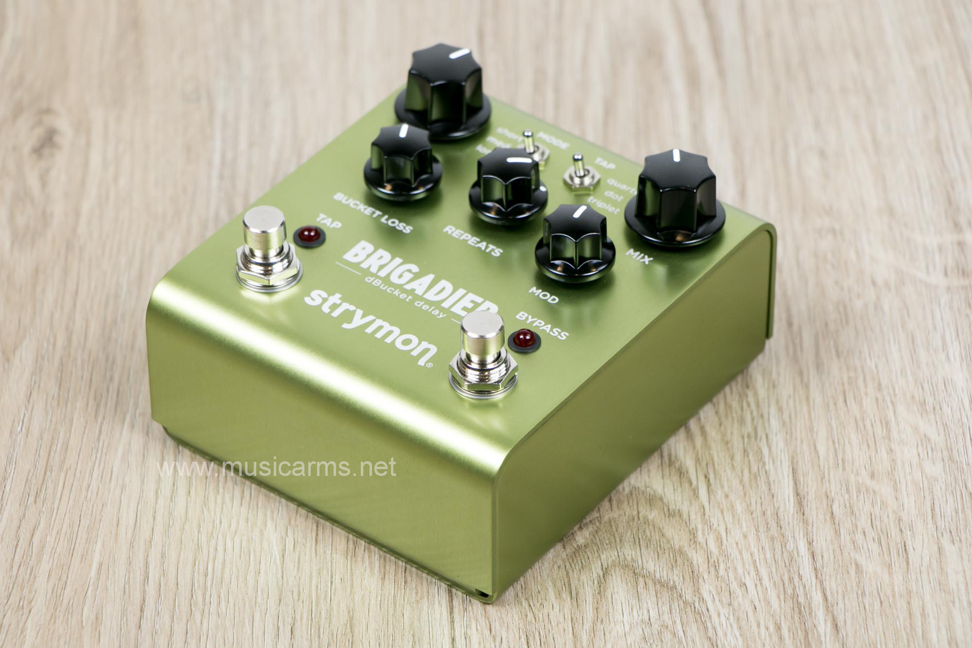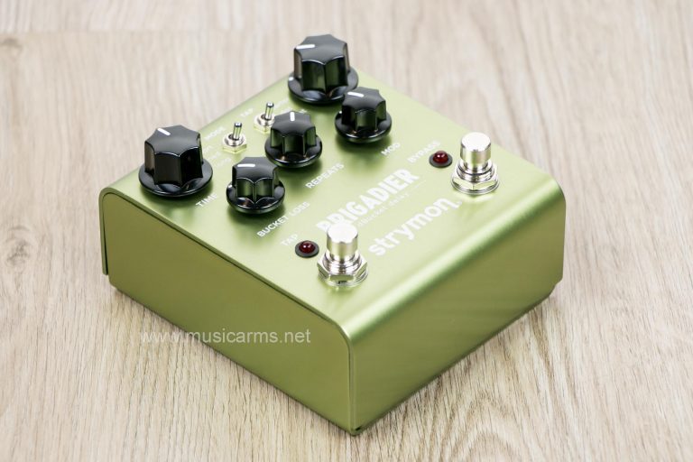 Strymon Brigadier เอฟเฟค Delay เอนกประสงค์โดยจะมี Delay 3 โหมด Short, Medium และ Longและมี Tap Tempo พร้อมโหมดโน๊ต 8 สามารถให้ค่าที่แม่นยำ สามารถกดปุ่ม Tab ค้างไว้เพื่อเล่นซ้ำเรื่อยๆได้ เท่านั้นยังไม่พอ สามารถปรับ +/- 3dB เพิ่มหรือตัดเมื่อเอฟเฟคทำงานอีกด้วย ตัว Output แบบสเตอริโอ เสียงแน่นคมชัด สามารถต่อฟุตสวิทช์ได้ ใครที่ชอบเล่นเสียง Delay รับรองว่าถูกใจ