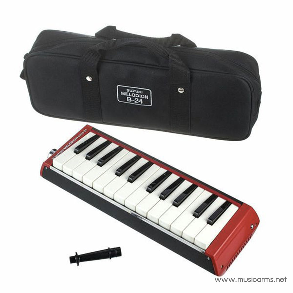 Suzuki B-24 Bass Melodion เมโลเดี้ยนคีย์เบส เป่าง่ายไม่กินลม แบบ 24 คีย์ ให้เสียงเบสที่มีเอกลักษณ์อย่างแท้จริง โครงสร้างคุณภาพสูงมากและมีขนาดใหญ่กว่าตัวปกติ เพื่อเสียงต่ำที่กังวานมากกว่าเดิม มาพร้อมกับกระเป๋าเพื่อให้การปกป้องที่ดี แลพท่อลมพร้อมเป่า เป็นอีกหนึ่งเครื่องดนตรียอดนิยมที่เล่นได้ทั้งคนเดียวและเป็นวง