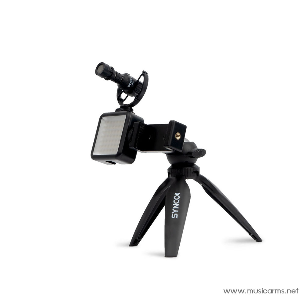 The SYNCO mobile vlogging kit provides a smartphone video rig for hand-held use and tabletop shooting. The external microphone, fill light, tripod, and other devices are set on it using the cold shoe mounts or the 1/4” threads only.