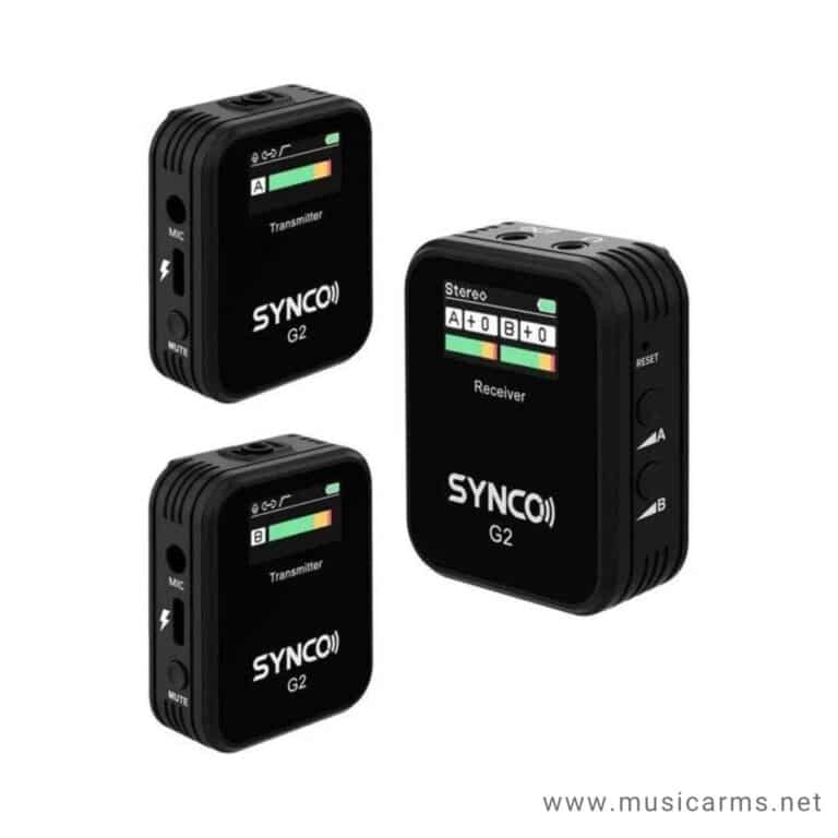 ระบบไมโครโฟนไร้สายคู่ SYNCO G2(A2) สร้างความแตกต่างจาก G2(A1) โดยมีตัวส่งสัญญาณอื่นเพื่อให้สามารถบันทึกบทสนทนาแบบ 2 คนและความยืดหยุ่นของโหมดเอาต์พุตได้ และแตกต่างจาก G1(A2) ด้วยสีจริง จอแสดงผล TFT บนทั้งตัวส่งและตัวรับเพื่อให้แต่ละตัวเลขที่สำคัญ เช่น โหมดการบันทึกและสถานะแบตเตอรี่ สามารถอ่านได้ภายใต้ความเข้มของแสงที่แตกต่างกัน