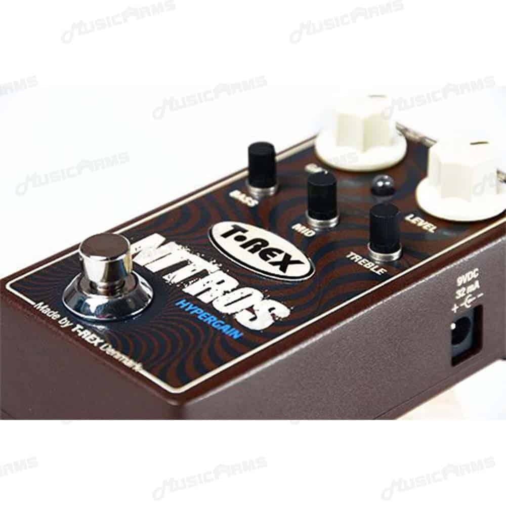 The T-Rex Nitros certainly does capture a very punchy and scooped high gain distortion, but being the most tweakable dirt pedal we make, it will also do the “80´s hair rock” sound to a T. And that´s with the gain knob set high…lower settings are great if you are looking for texas boogie-rock.