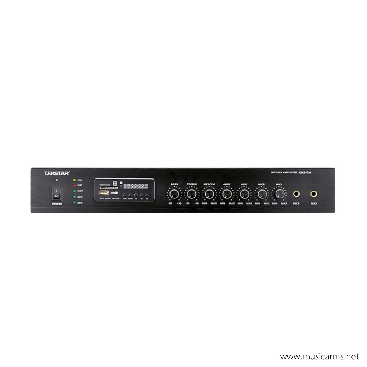 Takstar EBS-06M เป็นเพาเวอร์แอมพลิฟายเออร์ขนาดกะทัดรัดที่ออกแบบมาสำหรับระบบกระจายเสียง (Public Address) และการติดตั้งในพื้นที่ขนาดกลาง เช่น ร้านอาหาร ห้องเรียน หรือสำนักงาน โดยมีจุดเด่นที่การรองรับการเล่นไฟล์มัลติมีเดียในตัวและการเชื่อมต่อที่หลากหลาย