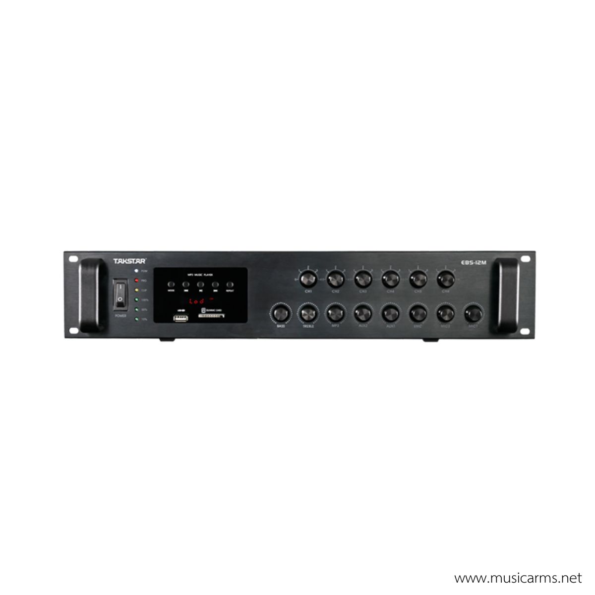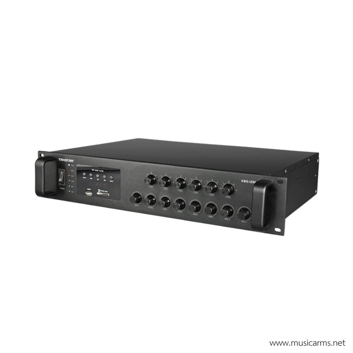 The Takstar EBS-12M is an integrated power amplifier designed specifically for public address systems. It is suitable for use in restaurants, cafes, schools, or small to medium-sized offices.