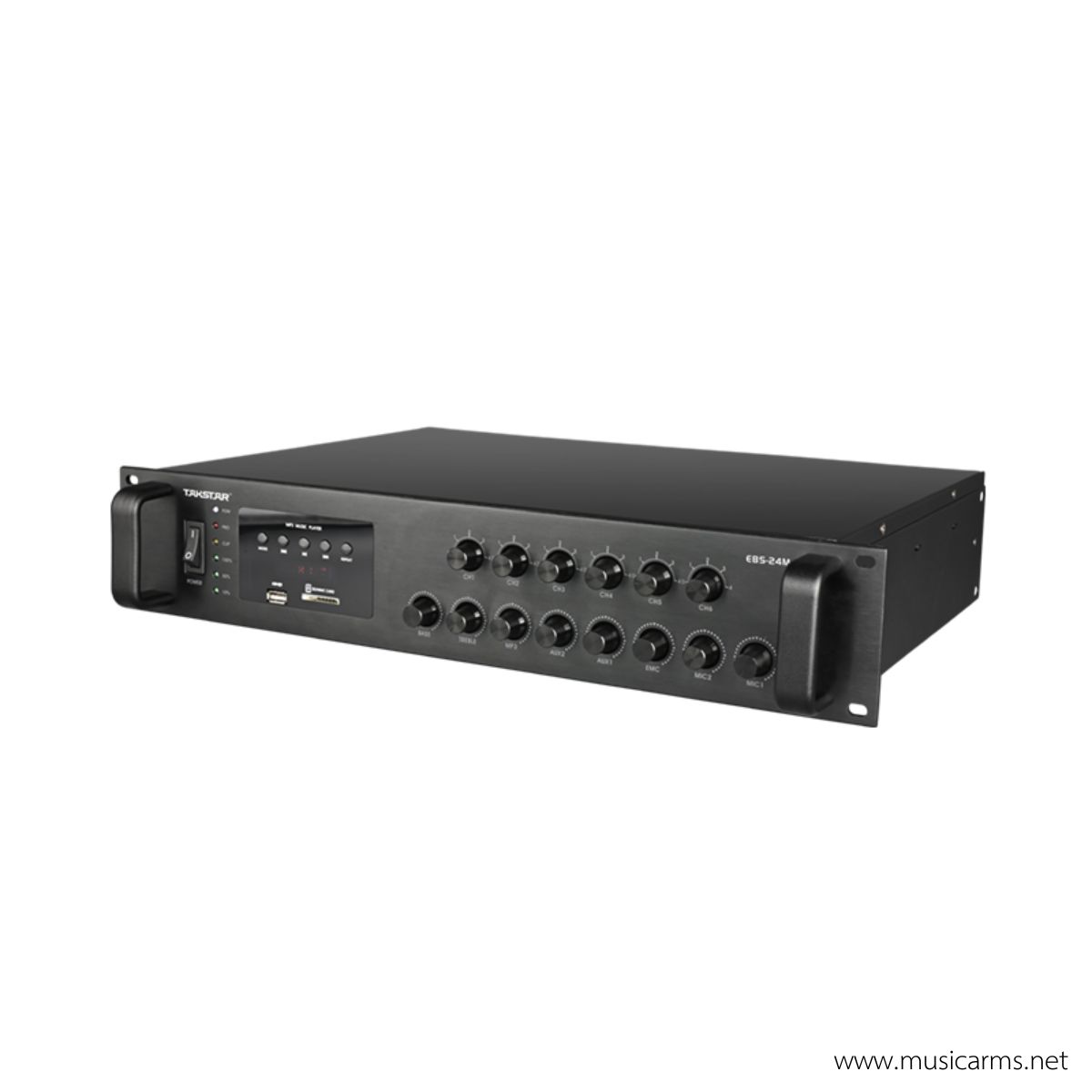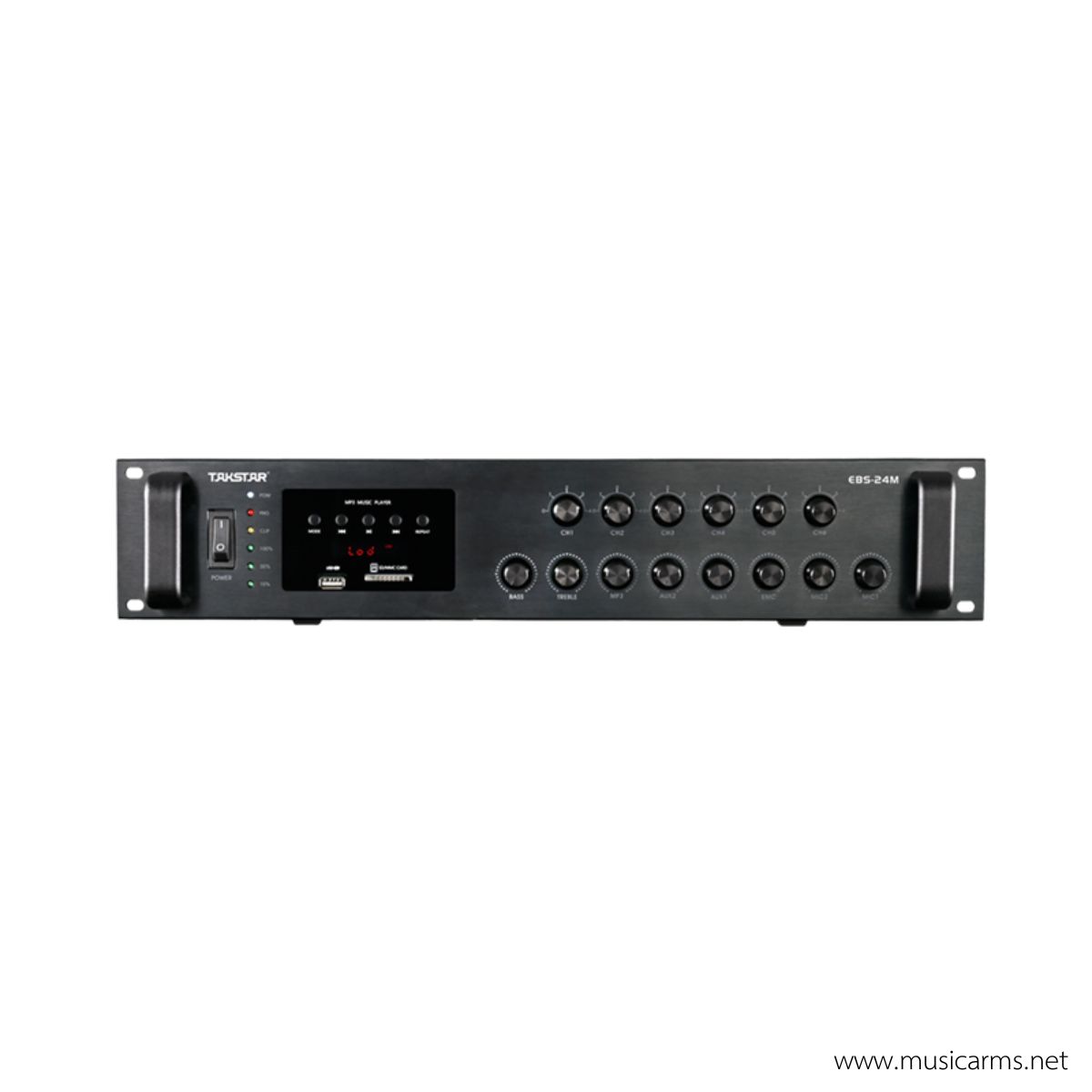 Takstar EBS-24M คือพาวเวอร์แอมพลิฟายเออร์ (Power Amplifier) ที่ออกแบบมาเพื่อรองรับงานระบบเสียงประกาศ (Public Address) และระบบเสียง Background Music โดยเฉพาะรุ่นนี้มีจุดเด่นด้านความทนทานและการจัดการโซนลำโพง