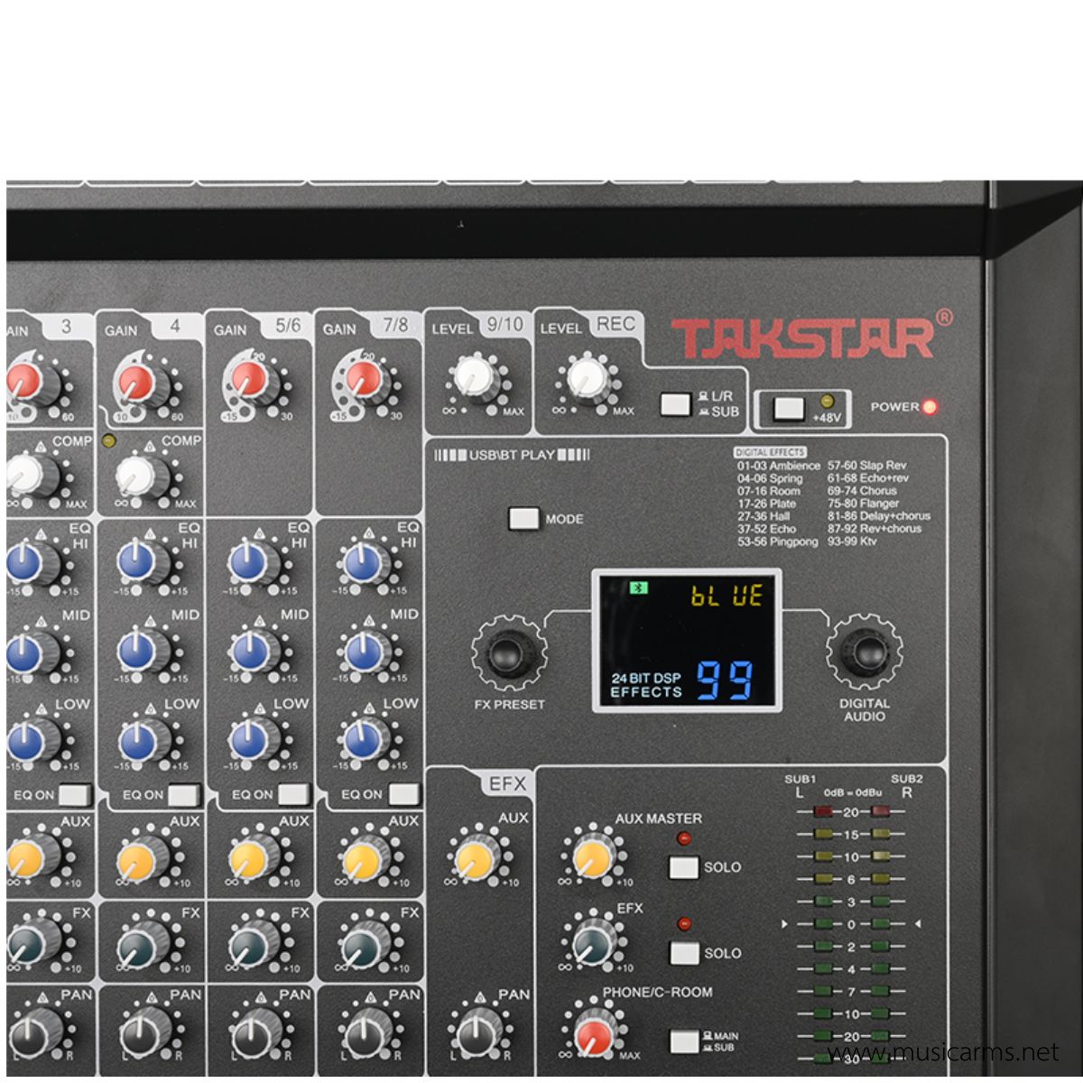 Built-in DSP Effects: มีเอฟเฟกต์ดิจิทัลในตัว (เช่น Reverb, Delay) ช่วยเพิ่มมิติให้กับเสียงร้องหรือเสียงเครื่องดนตรีโดยไม่ต้องต่ออุปกรณ์ภายนอก