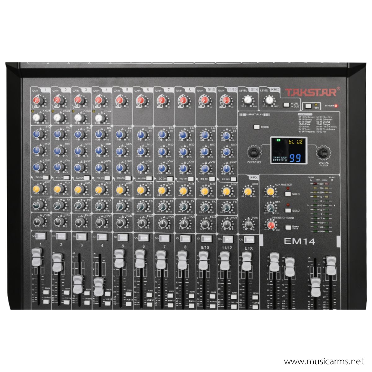 Takstar EM-14 เป็นมิกเซอร์ขนาดเล็กแบบคอมแพ็ค (Compact Mixer) ที่ออกแบบมาเพื่อรองรับการใช้งานที่หลากหลาย ทั้งการไลฟ์สด (Live Streaming), การบันทึกเสียงในบ้าน (Home Studio) หรือการทำคอนเทนต์ออนไลน์ โดยมีจุดเด่นอยู่ที่ความครบเครื่องในตัวเดียว