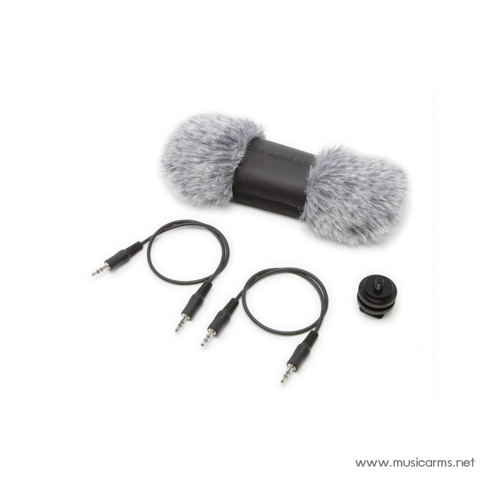 The Tascam AK-DR70C is an accessory package for Tascam’s DR-70D and DR-701D handheld recorders. The kit includes a fuzzy windscreen for reduction of wind noise, a shoe mount adpater that can be attached to a camera accessory shoe or the recorder, and two 3.5mm stereo mini jack cables for recording to, and monitoring from, a DSLR camera.