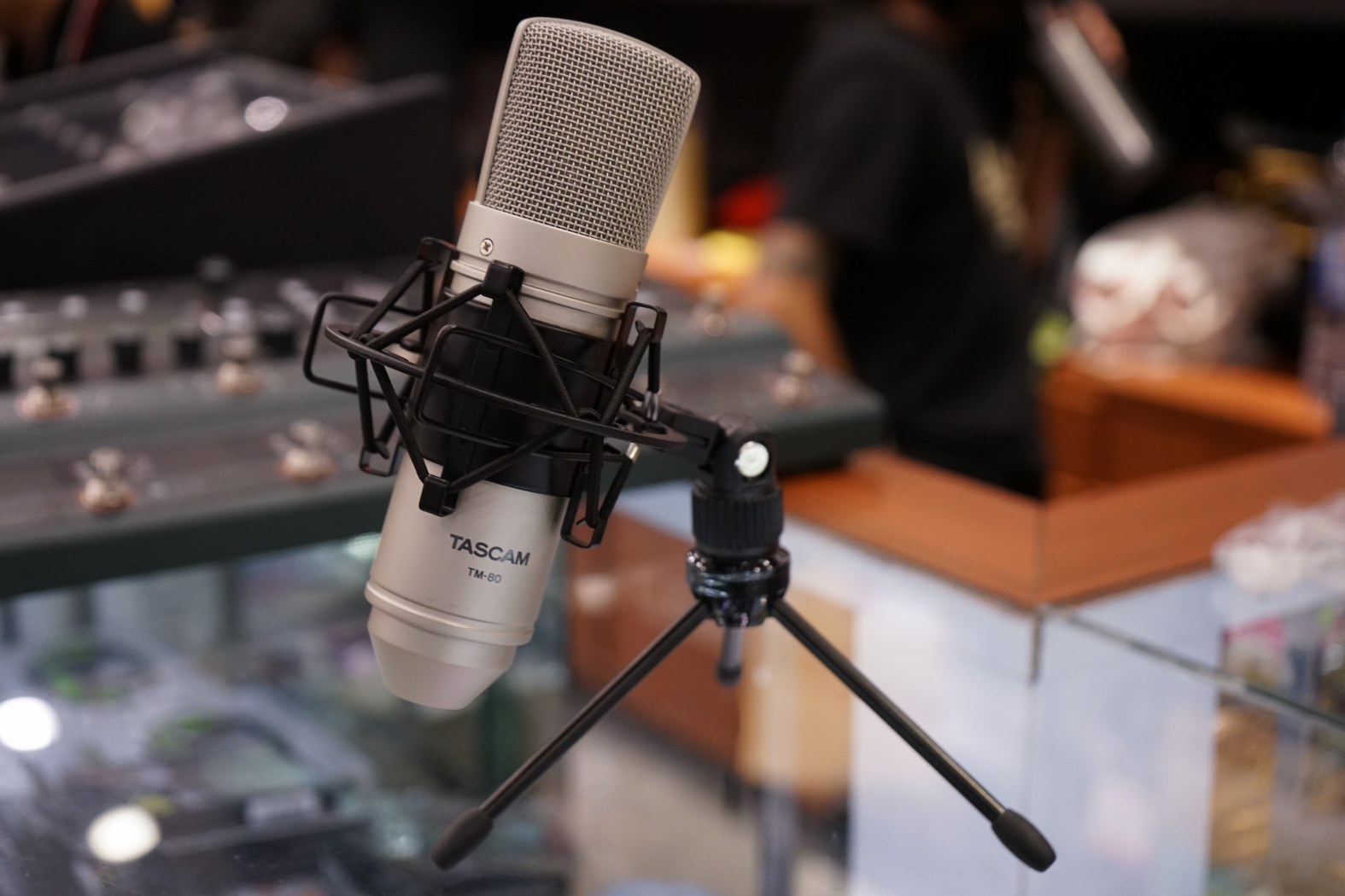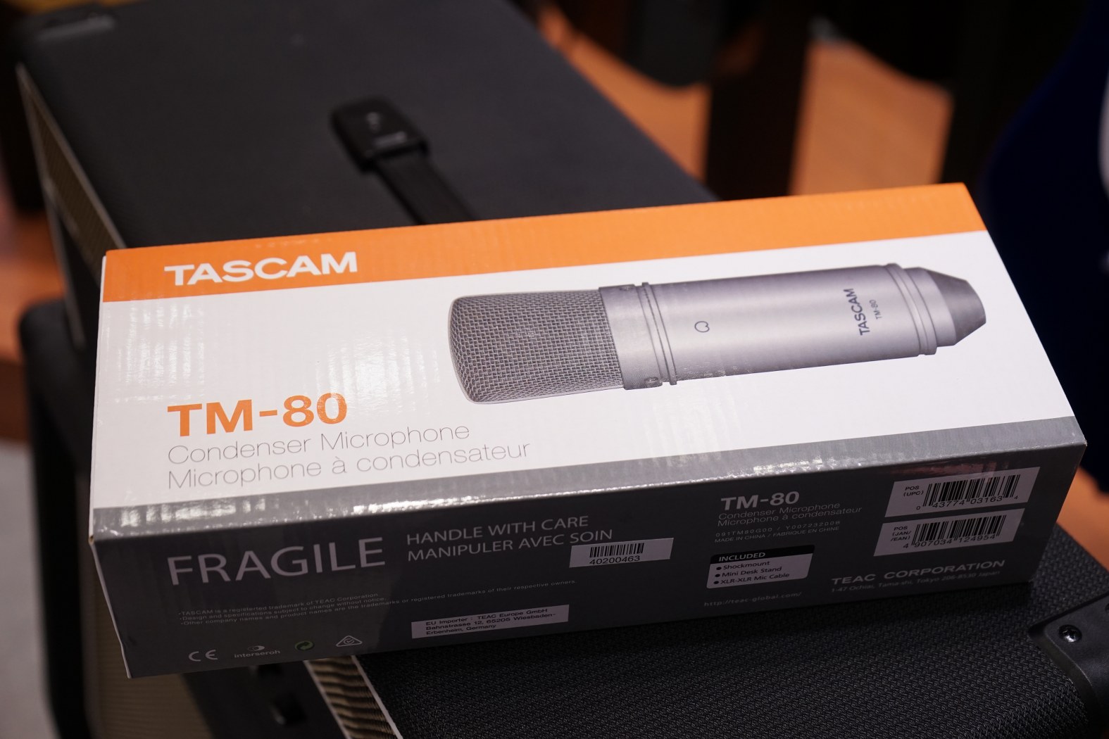 Tascam TM-80 ไมโครโฟนคอนเดนเซอร์สำหรับบันทึกเสียง ในตัวไมค์ประกอบด้วยไดอะแฟรมอลูมิเนียมขนาด 18 มม. ทำให้ไม่มีเสียงรบกวนจากภายนอก และยังเป็นรูปแบบคาร์ดิออยด์ เสียงที่ออกมาจึงมีความคมชัดมากขึ้น รอรับเสียงดังได้ถึง 136 เดซิเบล ตอบสนองคลื่นความถี่กว้าง จะใช้พูดหรือร้องเพลงก็สบายๆไร้ปัญหา