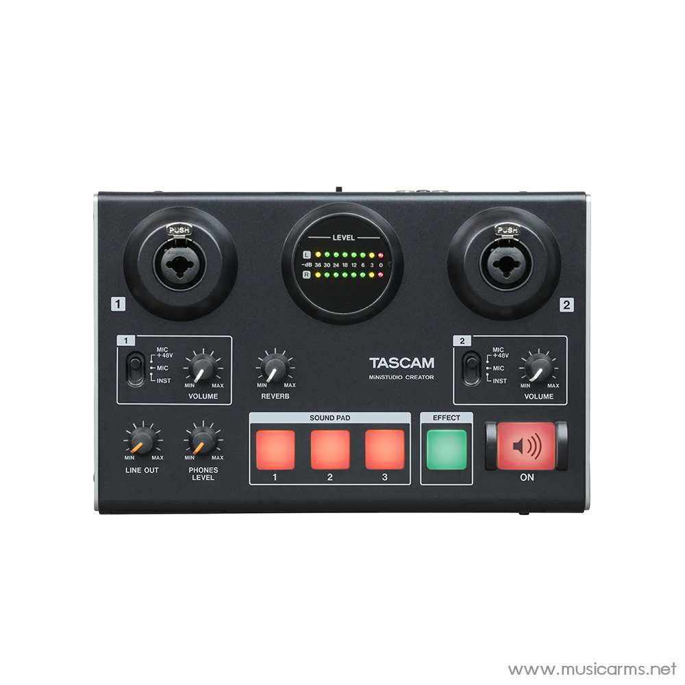 The Tascam MiNiSTUDIO Creator US-42B is a computer audio interface that has been developed to enable anyone to broadcast their programs to the world with ease. By using a dedicated device with high-quality audio circuits for mic and instrument input you lay the foundation for impressive sound in high quality. Moreover, the MiNiSTUDIO Creator offers several techniques that can make programs more interesting in order to grow your audience. Professional broadcasters, for example, call pre-recorded clapping, cheering and other sounds with a press of a button. With the Sound Pads on the MiNiSTUDIO Creator you too can trigger such sounds simply by pressing buttons. There is also a ducking function that lowers the volume of background music during announcements. And you can use voice effects and reverb to improve the atmosphere and raise the level of excitement of a program.