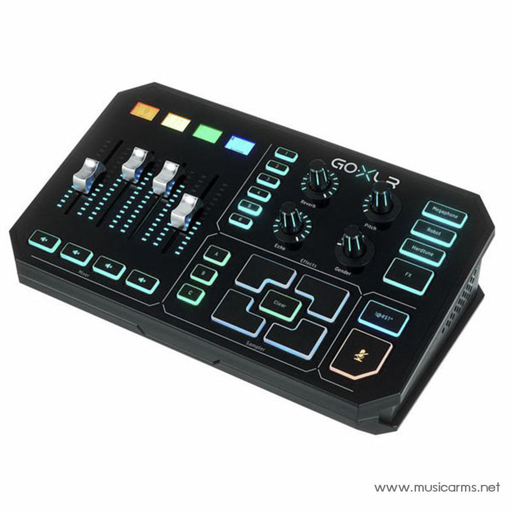 Tc Helicon GoXLR อินเตอร์เฟสเสียงแบบ 4 แชนแนลสามารถเชื่อมต่อ USB ได้ คุณสมบัติที่ใช้งานง่ายและการควบคุมแบบเรียลทาร์ม เป็นการผสมผสานที่ลงตัวสำหรับการถ่ายทอดสดและการสตรีมเกม มีช่องอินพุตที่ครบครันทั้ง ไมค์สตูดิโอ, lav, พีซี และเกมคอนโซล เฟดเดอร์แบบใช้มอเตอร์แบบ Long-Throw พร้อมไฟสัญญาณ LED และแถบลายเส้นเสียงที่ปรับแต่งได้เพื่อระบุและปรับระดับแหล่งกำเนิดเสียงได้อย่างรวดเร็ว ส่วน FX แบบสแตนด์อโลนและฟังก์ชัน Sampler ที่บันทึกและนำเข้า พร้อมด้วยปุ่มลัดและสวิตช์ที่ตั้งไว้ล่วงหน้า