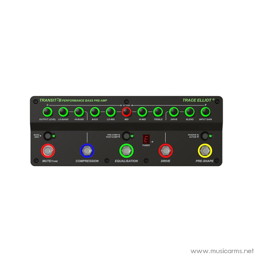 Trace Elliot Transit B Bass Pre-amp & Effects ปรีแอมป์เสียงดี เป็นเอฟเฟคแบบ Compression แบบ Dual Band สามารถเชื่อมต่อได้ครบเครื่องทั้งแบบ Line และ XLR รวมถึงหูฟัง สามารถปรับ EQ ได้ 4 แบนด์ โดยจะมีสวิทช์ปรับแบบคลาสสิค พร้อมปุ่มปรับระดับ Input Gain และ Output Level และยังเพิ่มเทคโนโลยีด้วยการเชื่อมต่อมือถือได้ เล่นเพลงหรือทำเพลงเป็นเรื่องง่ายๆและไม่น่าเบื่อ ขนาดกะทัดรัด น้ำหนักเบา พร้อมพกพาไปได้ทุกที่