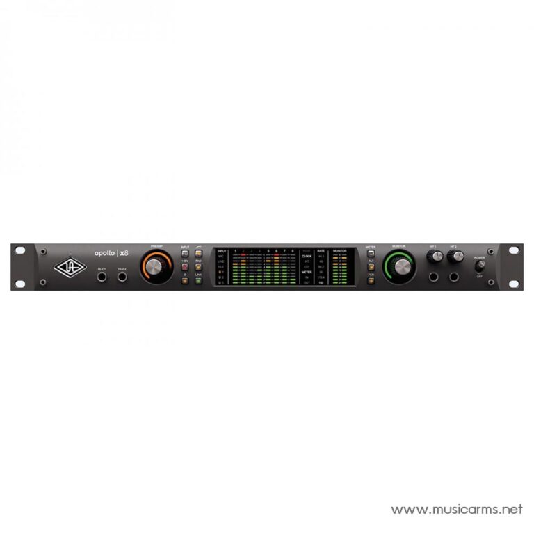 The Apollo x8 one of the latest additions to Universal Audio’s revered Apollo series. The Apollo interface series is renowned for its exceptional audio fidelity and class-leading audio conversion. The Apollo x8 builds on this by incorporating new realtime UAD HEXA core processing. It delivers elite-class audio conversion as well as the ability to record with near-zero latency through the included preamp emulations.