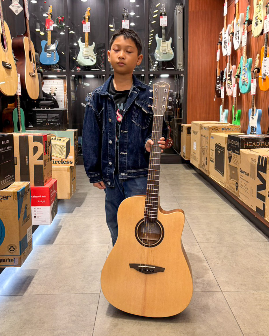 Veelah V1-DCE รุ่นยอดฮิต เเบรนด์นี้เขามีดีตั้งแต่ได้ไม้หน้าแท้ที่ทำจากไม้สปรูซ แถมปิ๊กอัพที่มายังเป็นของ Fishman อีกด้วย สามารถจูนเสียงในตัวได้ เท่านั้นยังไม่พอ สายที่ใช้กับกีต้าร์เป็นสายเคลือบของ Elixir เคลือบกันสนิมอย่างดี ช่วยเรื่องเสียงให้มีความใสกังวานขึ้น บอดี้เป้นทรงเดทนอทมารตฐาน ทำจากไม้มะฮอกกานี เรียกได้ว่าคุ้มค่าคุ้มราคาสุดๆ จะเล่นในงานเลี้ยงต่างๆก็ได้ หรือจะสังสรรกับเพื่อนๆก็ดีเลยครับรุ่นนี้ อยากให้ลองเลยครับ