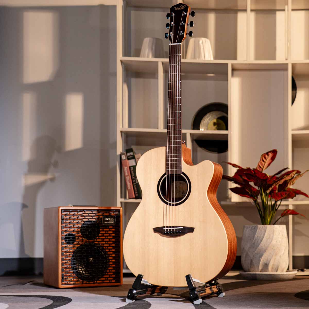Veelah V1-OMCE กีต้าร์ที่ได้รับความนิยมเป็นอย่างมาก รุ่นนี้บอดี้ทรง OM คอเว้าดีไซส์มาเพื่อให้จับคอร์ดได้ง่ายเเละลึกขึ้น ใช้วัสดุที่มีคุณภาพไม่ว่าจะเป็นไม้หน้าแท้ท็อปโซลิดซิทกาสปรู๊ซที่ช่วยให้เสียงมีความหวานเเละใสกังวานทุกครั้งที่ได้สัมผัส ปะข้างเเละหลังด้วยไม้มะฮอกกานีที่ช่วยให้ย่านเสียงเบสมีความหนาเเละชัดขึ้น คอทำจากไม้มะฮอกกานีช่วยให้สัมผัสลื่นมือ มาพร้อมกับปิ๊กอัพไฟฟ้าจาก Fishman ที่มีจูนเนอร์ในตัวสามารถตั้งสายได้ทุกครั้งขณะเล่น ราคาคุ้มค่า แถมกระเป๋าซอฟอย่างดีสีดำสวยงาม ถือเป็นกีต้าร์อีกรุ่นที่มีความคุ้มค่าเกินราคาอย่างมาก