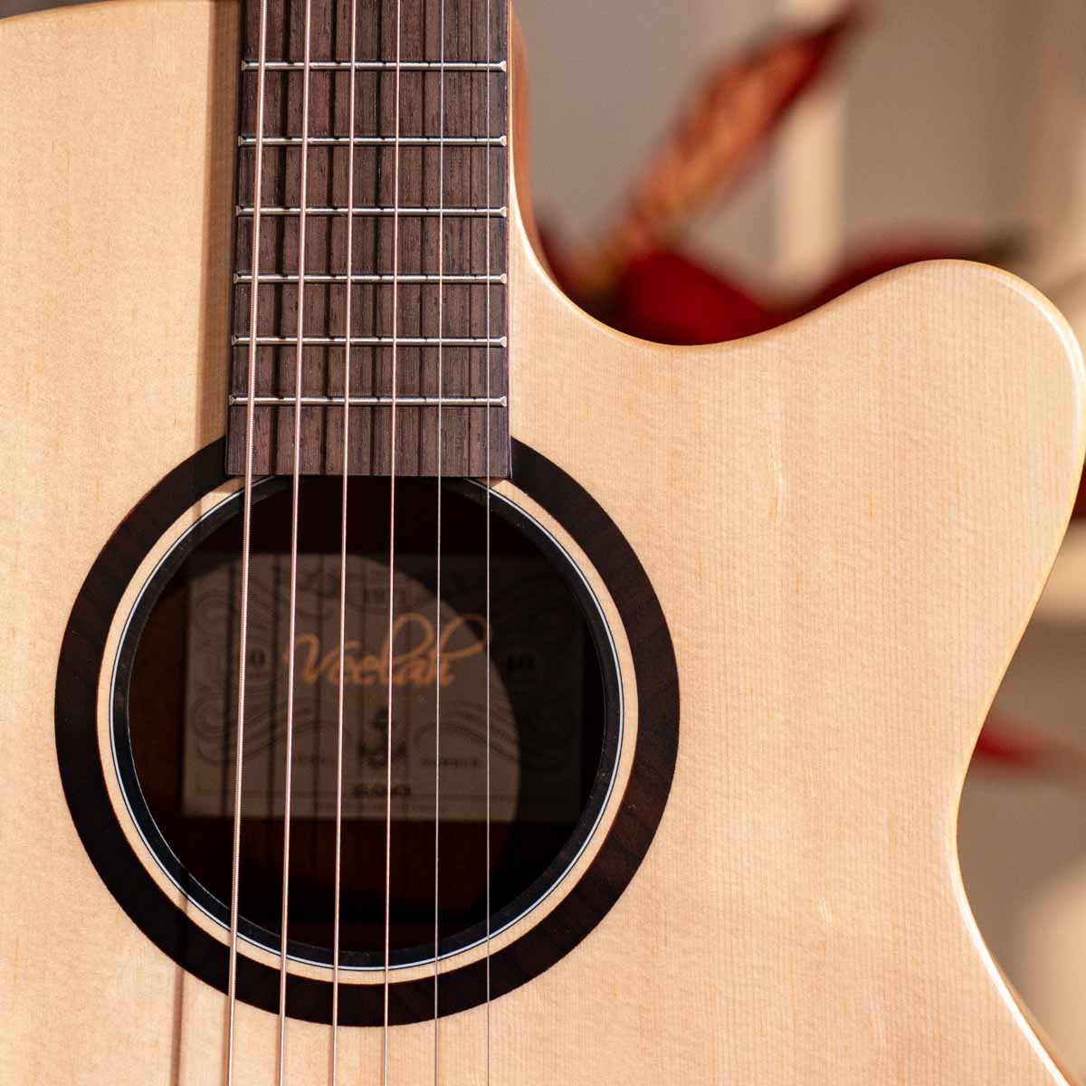 Veelah V1-OMCE กีต้าร์โปร่งไฟฟ้าทรง OM ที่สามารถพกพาได้ เหมาะสำหรับผู้ที่ต้องการออกงานนอกสถานที่ เเละเหมาะกับผู้ที่ต้องการโปร่งไฟฟ้าในราคาย่อมเยาที่ได้ไม้หน้าแท้อีกด้วย โดยจะเป็นท็อปโซลิดซิทกาสปรูซที่ให้ย่านเสียงกลางชัดเจน ซาวด์มีความกังวาน ด้านข้างและหลังไม้มะฮอกกานีที่ช่วยให้ย่านเสียงเบสมีความหนาเเละชัดขึ้น คอทำจากไม้มะฮอกกานีช่วยให้สัมผัสลื่นมือ ทรงคอเล็กจับง่าย วัสดุงานอะไหล่ใช้ของอย่างดีคุ้มค่าเกินราคา ภาคไฟฟ้าของ Fishman Presys I เสียงดี ปรับ EQ ได้และมีจูนเนอร์ในตัว ใครชอบทรง OM ราคาเบาๆมาลองที่ร้านได้เลย