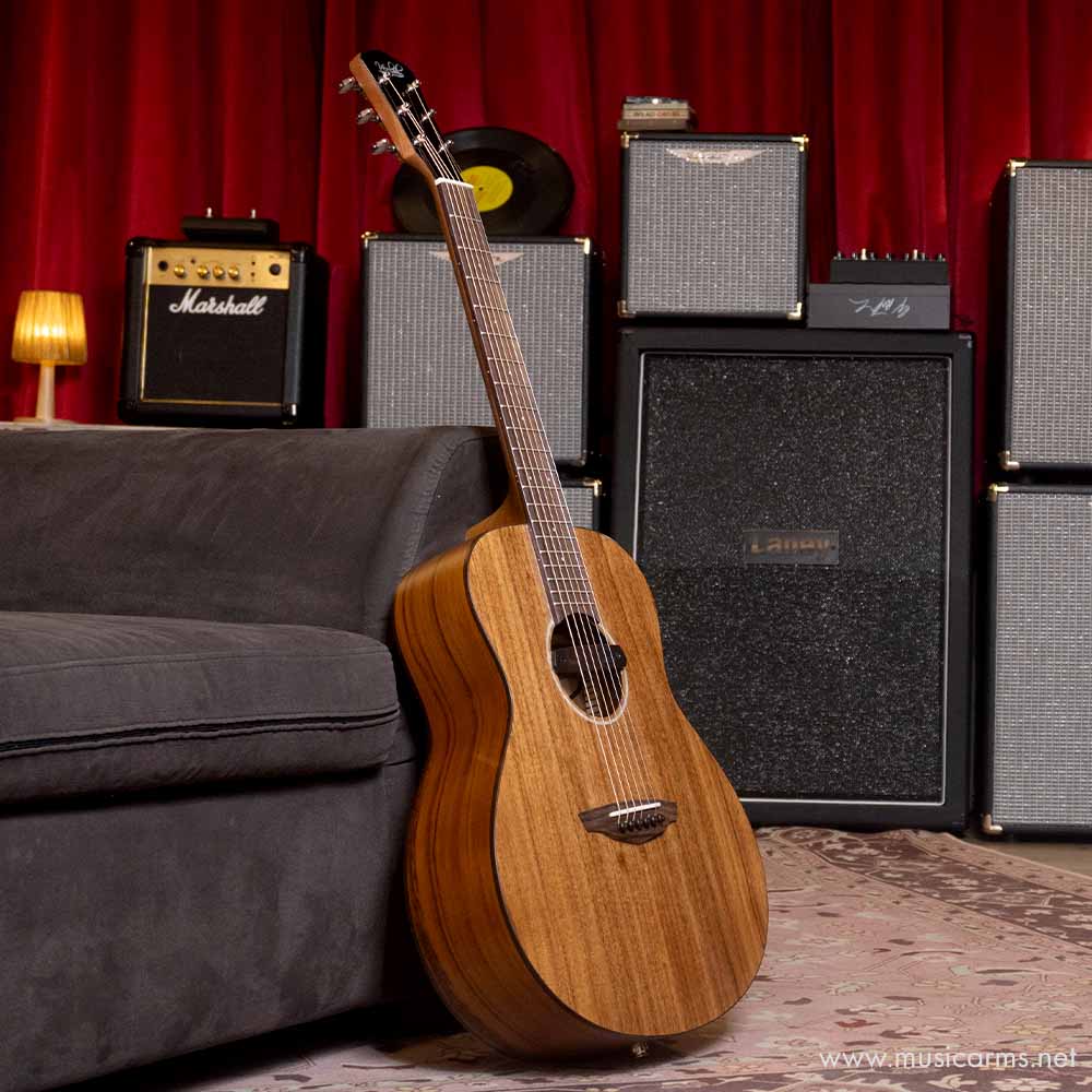 เรื่องสั้นๆ ของเจ้าตัว Veelah Mini Camper Koa-E โปร่งไฟฟ้า รุ่นล่าสุดจาก veelah กีต้าร์ที่พกพาสะดวก เล่นง่าย สบายมือ จับง่าย คุณภาพดี คุ้มเกินราคา ชื่อรุ่นว่า Koa ความพิเศษก็ต้องเป็นการใช้ไม้โคอะเป็นส่วนประกอบหลัก โดยไม้ชนิดนี้เป็นไม้หายากที่ปลูกได้แถบฮาวายหรือประเทศที่เป็นเกาะ โดดเด่นด้วยลายไม้คล้ายคลื่นทะเลจึงนิยมทำสีธรรมชาติให้เห็นลาย ตัวไม้เป็นไม้เนื้อฉ่ำจึงให้เสียงที่หนากังวานคล้ายคลึงกับไม้มะฮอกกานี ให้สุ้มเสียงที่ค่อนข้างหนาตีคอร์ดแน่น อีกทั้งการที่ทรงบอดี้เป็นแบบมินิทำให้เล่นถนัดมือมากขึ้นไม่เทอะทะ คอเล็กเพราะความกว้างนัทส่วนคอแค่ 43 มม. ฟิงเกอร์บอร์ดยังทำจากไม้โรสวู้ดให้เสียงค่อนข้างดีอีกด้วย ไม้ปะหน้ายังเป็นท็อปโซลิดหรือไม้แผ่นเดียวที่พอเวลาใช้นานๆไปไม้จะแห้งทำให้เสียงกีต้าร์นุ่มนวลขึ้น รุ่นนี้เสริมความสวยงามให้กับตัวบอดี้ด้วยการเคลือบสีแบบด้าน ด้านหลังบอดี้เผยลายไม้ค่อนข้างสวยสำหรับผู้ที่ชื่นชอบความงามแบบคลาสสิค ตัวทัชชิ่งก็สามารถปรับแต่งได้ให้จับถนัดมือมากขึ้น แบรนด์ Veelah กำลังตีตลาดในไทยจึงใช้วัสดุทำกีต้าร์ค่อนข้างดีอยู่แล้ว นอกจากเรื่องวัสดุไม้แล้ว รุ่นนี้ยังมีภาคไฟฟ้าโดยปิ๊กอัพเป็นรุ่น Fishman Neo ปิ๊กอัพจากอเมริกา สามารถกัน Feedback หรือเสียงหอนสะท้อนได้ด้วย กีต้าร์ Top-Solid แถมกระเป๋าซอฟท์เคสให้อีกในราคาเพียงเท่านี้ ถือว่าคุ้มเกินคุ้ม