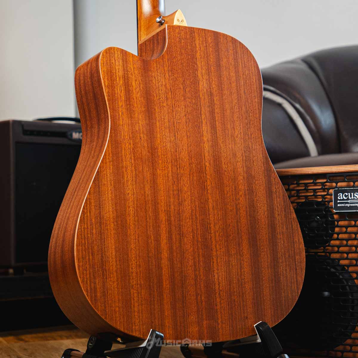 Veelah V1-DMCE กีตาร์โปร่งไฟฟ้าที่มีความพิเศษกับการใช้ไม้มะฮอกกานีในทุกส่วนของบอดี้ ทำให้เนื้อเสียงมีคาแรคเตอร์ที่ชัดเจน และยังได้ไม้หน้าเป็นท็อปโซลิดหรือไม้แท้แผ่นเดียว ยิ่งนานไปเสียงจะหวานนุ่มนวลมากยิ่งขึ้น ซาวด์มีความหนา ละมุนฟังและอบอุ่น มาในทรงเดรทนอตที่มีขนาดมาตรฐาน อีกทั้งยังดีไซน์คอมาขนาดเหมาะมือ ให้สามารถจับคอร์ดเเละเล่นได้ง่ายขึ้น พร้อมสายเคลือบกันสนิมจาก Elixir ที่เพิ่มเสียงให้มีมิติขึ้นอีก และได้ภาคไฟฟ้า Fishman Presys มีจูนเนอร์ในตัวรวมถึงปรับ EQ เลือกเสียงที่ชอบได้ คนชอบซาวด์ไม้มะฮอกกานีถูกใจสิ่งนี้แน่นอน