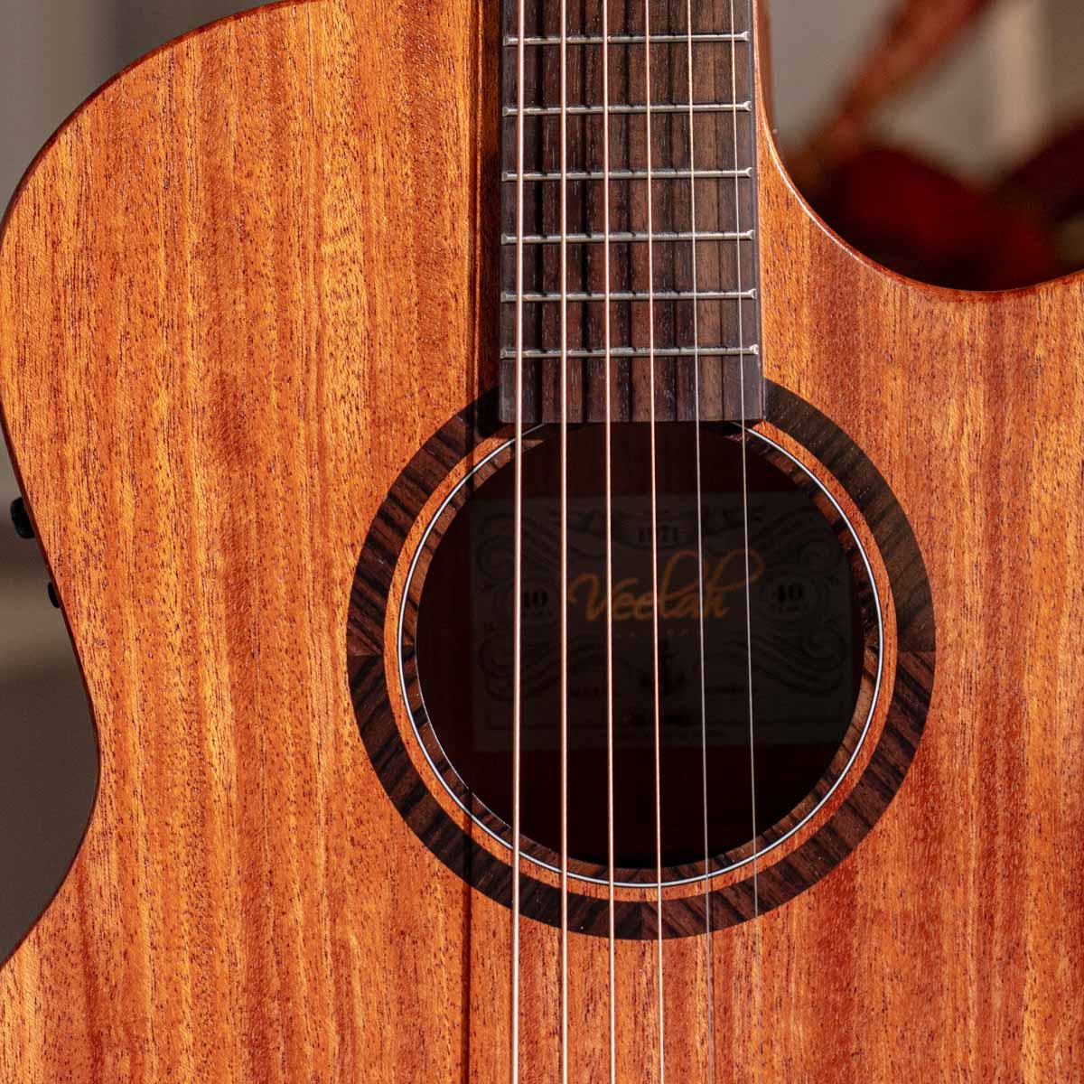 - Solid Mahogany Top: Provides a rich, warm, and mellow tone with a prominent mid-range. Solid wood improves its sound and resonance the more it is played and ages.