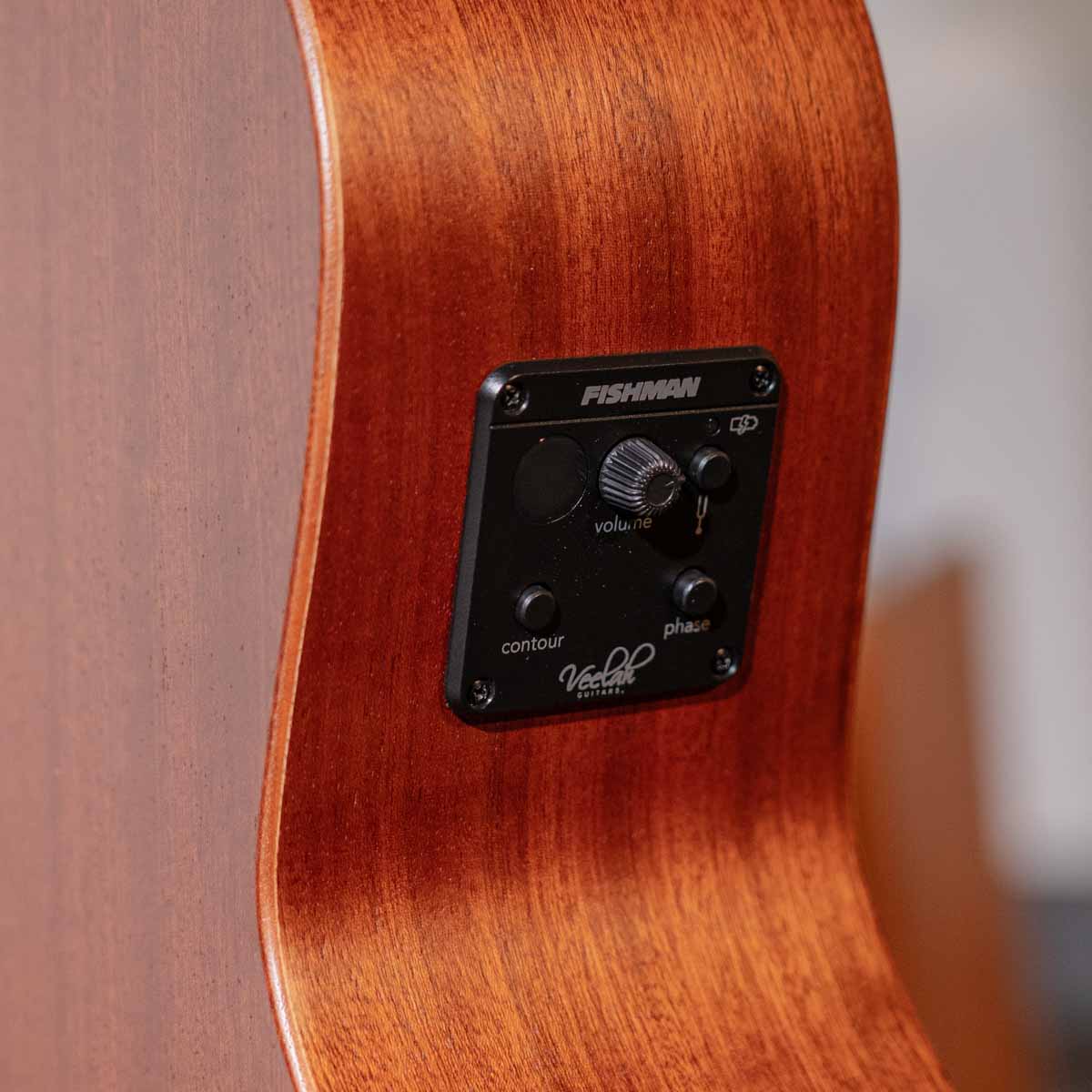 The Veelah V1-GAMCE is an acoustic-electric guitar featuring the versatile Grand Auditorium (GA) body shape. It delivers a warm, clear tone thanks to its Solid Mahogany top, paired with mahogany back and sides. Equipped with the Fishman Presys I pickup system, this guitar is ready for performance on any stage or in the studio. Embodying the elegant simplicity of the Veelah V1 series, the V1-GAMCE offers excellent value and reliability for musicians of all levels, combining quality woods and dependable electronics.