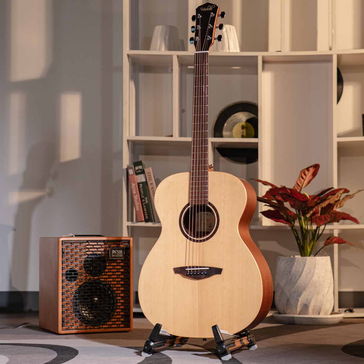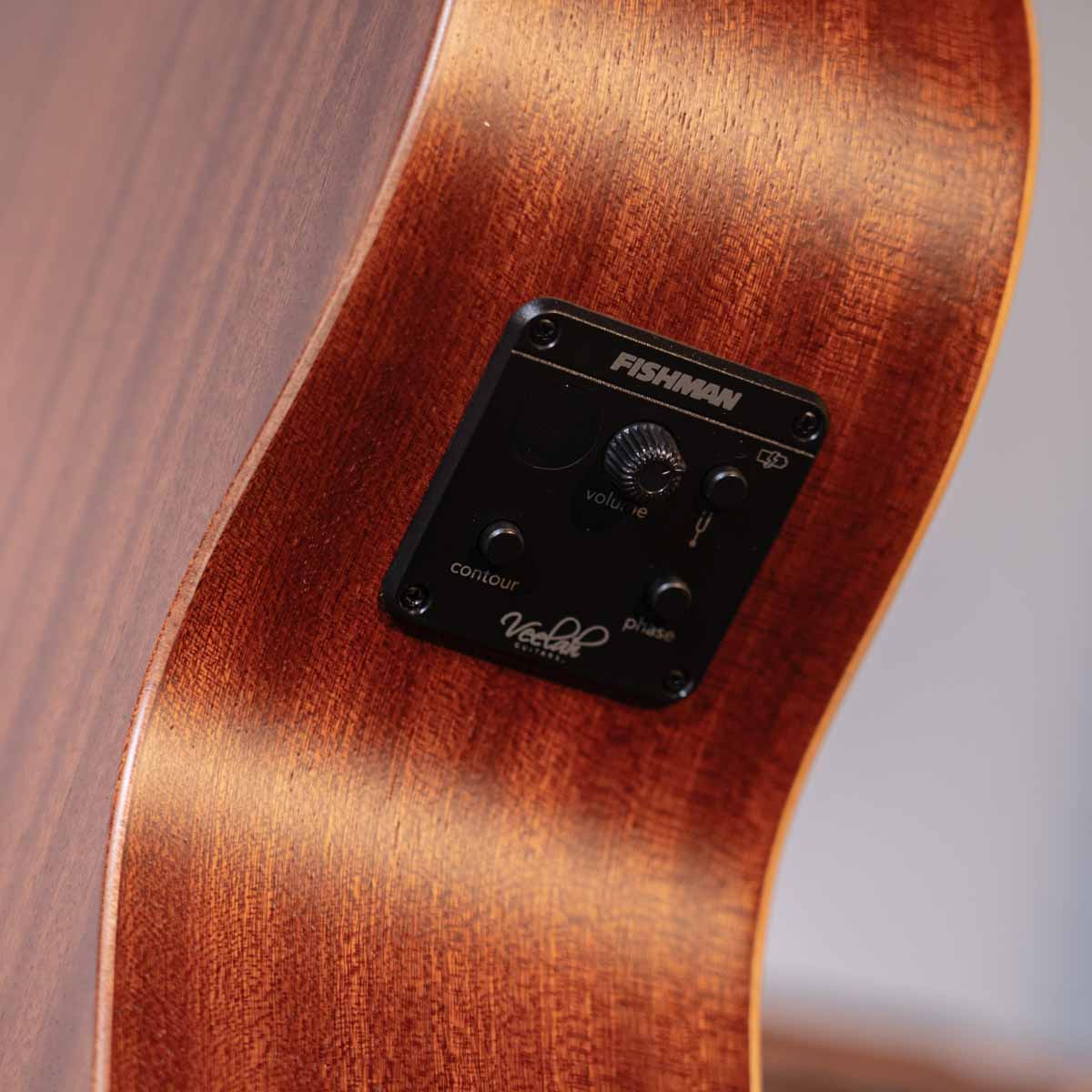 Veelah V1-OME กีต้าร์โปร่งทรง OM ที่จะมีขนาดบอดี้ไม่ใหญ่มาก เล่นง่าย โดยที่ได้ไม้หน้าเป็นท็อปโซลิดหรือไม้แท้ซิทกาสปรู๊ซแผ่นเดียว เป็นไม้ที่ให้เสียงกลางชัดเจนมีความใส เมื่อรวมกับไม้มะฮอกกานีเสียงที่ออกมาจึงมีมิติชัดเจนชัดเจน พุ่ง ฟังแล้วอบอุ่น คอไม้มะฮอกกานีทำทรงคอให้บางเล่นง่าย วัสดุงานอะไหล่ใช้ของอย่างดีคุ้มค่าเกินราคา ฟิงเกอร์สไตล์ก็ได้ สตรัมคอร์ดก็เสียงโดนใจ ภาคไฟฟ้าของ Fishman Isys +301 เสียงดี ปรับ EQ ได้ ถือเป็นกีต้าร์อีกรุ่นที่เหมาะกับคนชอบทรงไม่ใหญ่มากและต้องการภาคไฟฟ้า