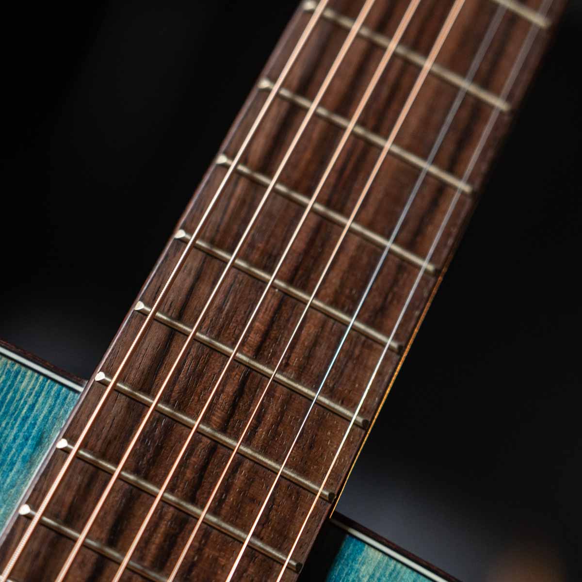 - Flamed Mahogany Back & Sides with Denim Finish: The visually striking flamed mahogany wood is complemented by a bold denim finish, creating a unique aesthetic statement.