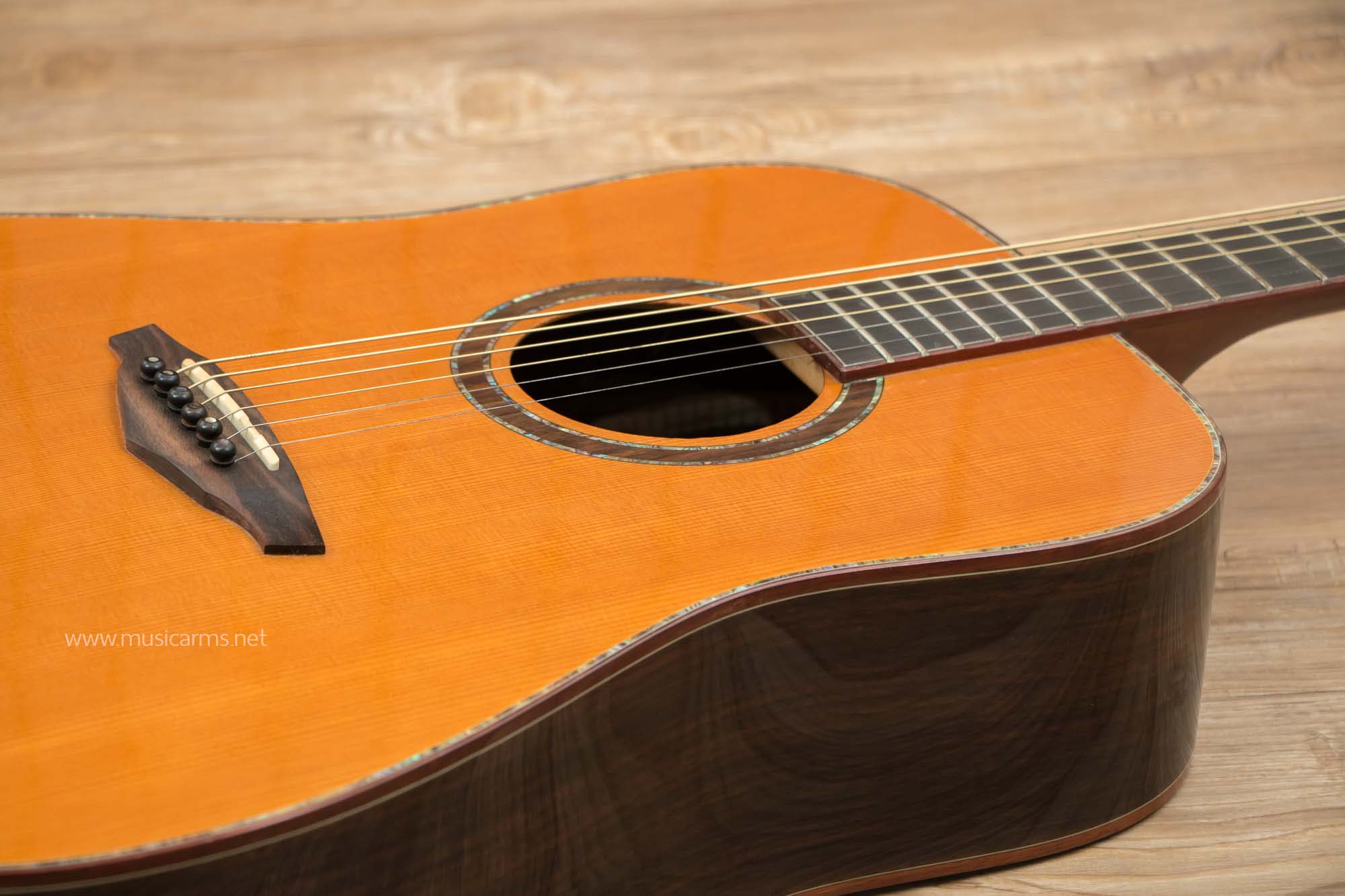 - ไม้ด้านข้างและส่วนหลังเป็นโซลิดอินเดียนโรสวู้ด