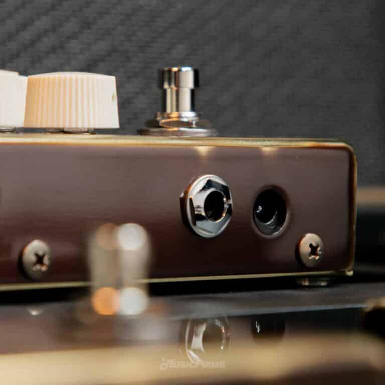 - การเชื่อมต่อ: อินพุต (แจ็ค 6.3 มม.) – เอาต์พุต (แจ็ค 6.3 มม.) – ขั้วต่อแหล่งจ่ายไฟ (การเชื่อมต่อโคแอกเชียล 5.5 x 2.1 มม. – ขั้วลบด้านใน)
