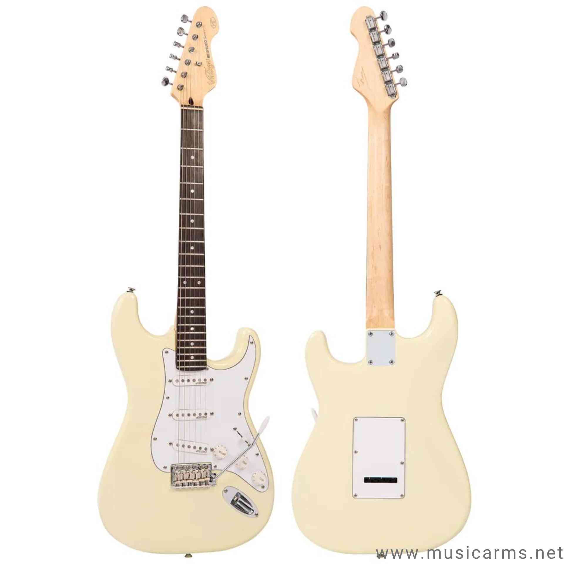 Wilkinson WJ55 patented E-Z-Lok machine heads. Simple, effective locking action for increased tuning stability. Staggered string post heights provide correct string rake angle for smooth vibrato action and correct playing tension.