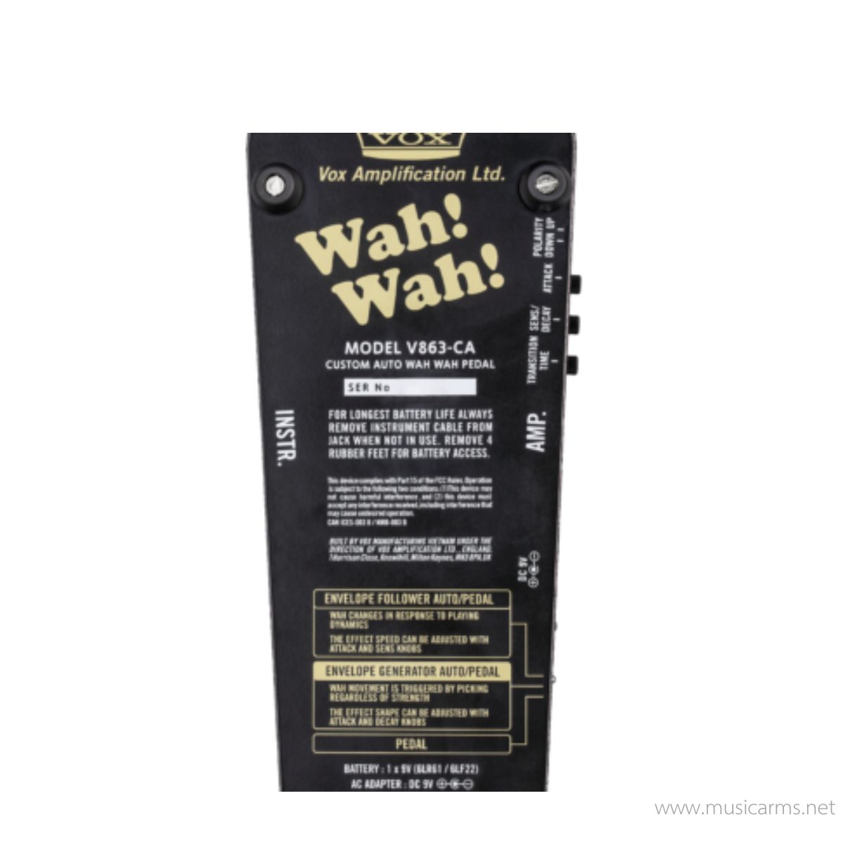 VOX V863-CA เป็นเอฟเฟกต์กีตาร์ประเภท Wah ที่ออกแบบมาเพื่อแก้ปัญหาที่มือกีตาร์หลายคนต้องเลือกระหว่าง Wah แบบเหยียบเอง (Manual) หรือแบบอัตโนมัติ (Auto Wah) โดย VOX ได้ใช้เทคโนโลยีที่ล้ำสมัยในการรวมทั้งสองฟังก์ชันเข้าไว้ด้วยกันโดยไม่สูญเสียโทนเสียง Wah อันเป็นเอกลักษณ์ของ VOX ที่มือกีตาร์ทั่วโลกหลงใหล
