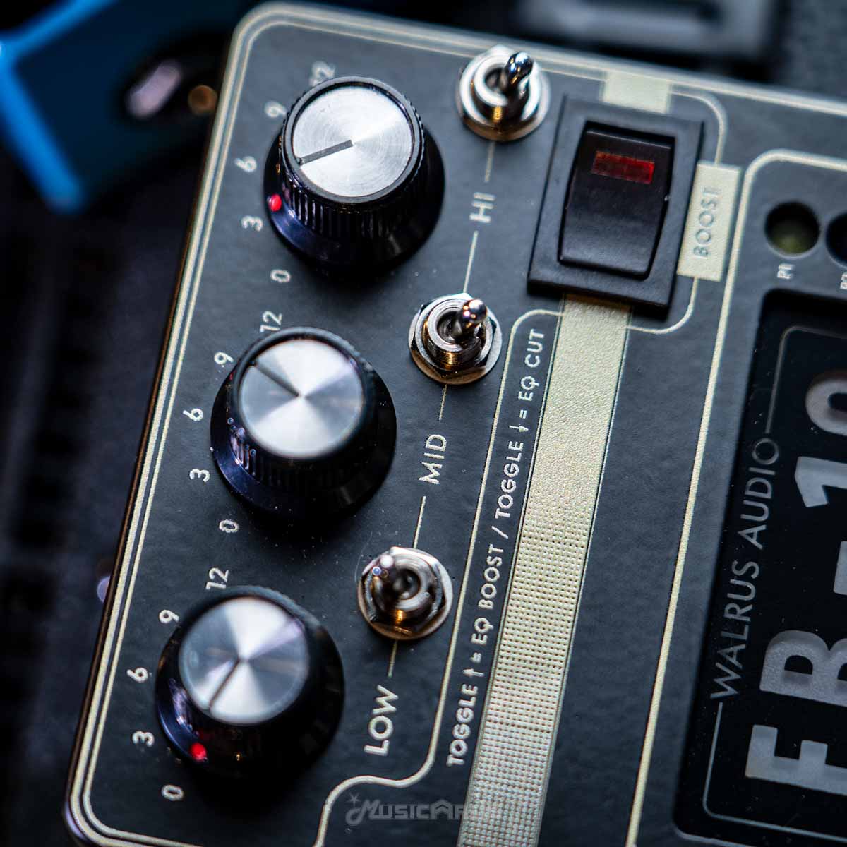 Walrus Audio EB-10 ทำหน้าที่เป็นทั้งปรีแอมป์, EQ และบูสต์ เพื่อให้คุณสามารถปรับแต่งเสียงกีตาร์ได้อย่างพิถีพิถัน สร้างโทนเสียงกีตาร์ไฟฟ้าคุณภาพระดับสตูดิโอได้ในการแสดงสด ปุ่มหมุนแต่ละปุ่มสามารถเพิ่มหรือลดความถี่ Low, Mid และ High ได้สูงสุด 12dB ขึ้นอยู่กับการตั้งค่าสวิตช์ Toggle เมื่อเปิดสวิตช์ Boost จะเพิ่มบูสต์แบบ MOSFET อีก 10dB เพื่อเพิ่มพลังเสียงที่ยอดเยี่ยม