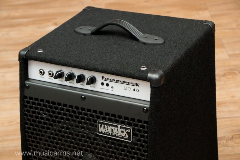 Warwick BC40 แอมป์เบสเสียงแน่นๆจากค่ายเบสดังอย่าง Warwick ที่คลุกคลีกับเบสไฟฟ้ามาอย่างยาวนาน รุ่นนี้เป็นแอมป์ที่มีขนาดใหญ่ขึ้นมาอีกนิดจากรุ่น BC20 เพราะใช้กำลังไฟ 40 วัตต์โดยเพิ่มขนาดดอกลำโพงให้ใหญ่ขึ้นเป็น 10 นิ้ว และยังมีลำโพงตัวเล็กแบบรับความถี่เสียงได้ดีอีก 1 ตัว ขนาด 2 นิ้ว จึงทำให้ซาวด์ออกมาแน่น ชัดทุกเม็ด สามารถปรับ EQ ได้ 3 ย่านเสียงเพื่อตอบรับกับดนตรีในทุกๆแนวและยังใส่ระบบ DDL ที่ตัดเสียงแตกเมื่อมีการเปิดโวลุ่มที่ดังเกินไปอีกด้วย ทำให้มือเบสมั่นใจได้ในคุณภาพซาวด์ที่ออกมาจากตู้
