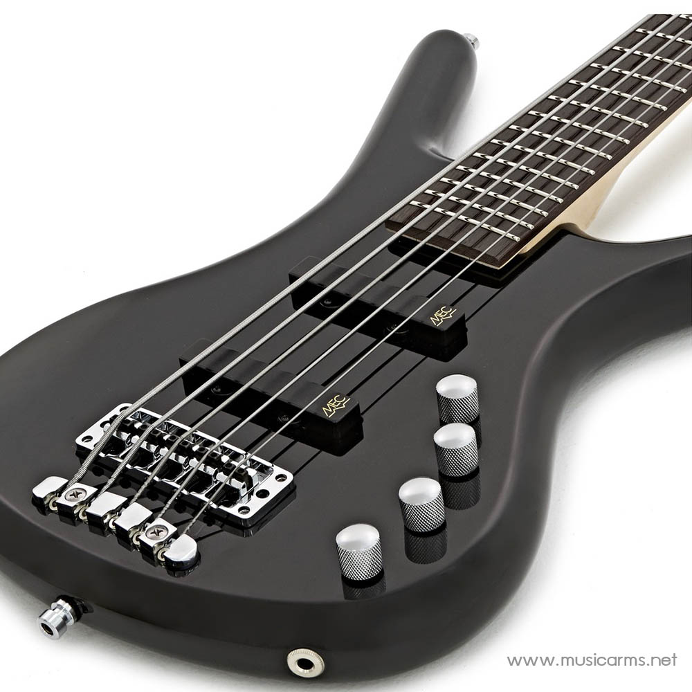 Warwick Rockbass Corvette Basic Medium Scale 5 Strings เบสไฟฟ้า 5 สายสุดดุันสีดำเคลือบเงา บอดี้เป็นไม้เอลเดอร์ คอไม้เมเปิลซึ่งจะปะหน้าคอด้วยไม้อีกานกา ช่วยให้ได้โทนเสียงที่มีมิติมากขึ้น ความยาวสเกลเพียงแค่ 32 นิ้ว สั้นกว่าเบสทั่วไป เล่นง่าย 24 เฟรตขนาดจัมโบ้ 24 เฟรตสูงเป็นพิเศษ และให้การควบคุมสายที่น่าทึ่งสำหรับเทคนิคทุกประเภท ปิ๊กอัพ MEC J/J “Dynamic Correction” พร้อมระบบอิเล็กทรอนิกส์แบบ 2 ทางแบบแอคทีฟให้เสียงทรงพลัง เหมาะกับมือเบสทุกประเภทตั้งแต่งานคอร์ดที่มีรายละเอียดไปจนถึงการริฟฟ์ช่วงต่ำและการเล่นโซโล