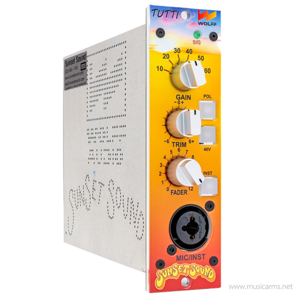 สัมผัสซาวด์ปรีแอมป์ระดับตำนานจากคอนโซลของ Sunset Sound Studio! Wolff Audio TUTTI คือการจำลองวงจรปรีแอมป์ที่ใช้ในการบันทึกเสียงศิลปินระดับโลกมาอย่างสมบูรณ์แบบในฟอร์แมต 500 Series ใช้ Dual 990 op-amps และหม้อแปลง Cinemag Nickel ทั้ง Input/Output ให้เสียงที่อุ่น, มีมิติ และเต็มไปด้วยคาแรกเตอร์ทางดนตรีที่น่าหลงใหล เป็นปรีแอมป์ที่สมบูรณ์แบบสำหรับการบันทึกเสียงร้องและเครื่องดนตรีที่ต้องการคุณภาพสูงสุด