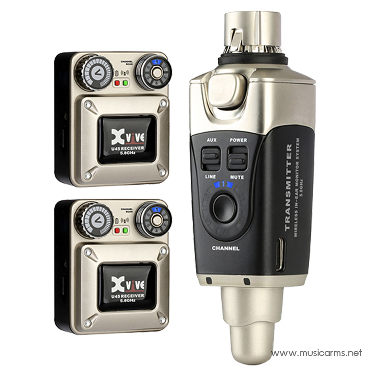 วงดนตรีทั้งหมดของคุณ สูงสุดหกคน สามารถใช้ระบบนี้ร่วมกันได้! สามารถมีสัญญาณมอนิเตอร์หนึ่งสัญญาณต่อหนึ่งตัวส่งสัญญาณ ดังนั้นหากคุณมีชุด U45 หลายชุด คุณสามารถปรับแต่งสัญญาณมอนิเตอร์สำหรับสมาชิกแต่ละคนในวงได้ นี่เป็นโซลูชันการตรวจสอบเสียงที่ง่าย ใช้งานได้ดี และคุ้มค่าสำหรับการบันทึกในสตูดิโอ การซ้อม หรือการแสดงสด ในการซ้อม สิ่งนี้ยังหมายความว่าไม่จำเป็นต้องมีลำโพง PA ดังนั้นวงดนตรีจึงสามารถซ้อมในอพาร์ตเมนต์หรือในช่วงดึกได้