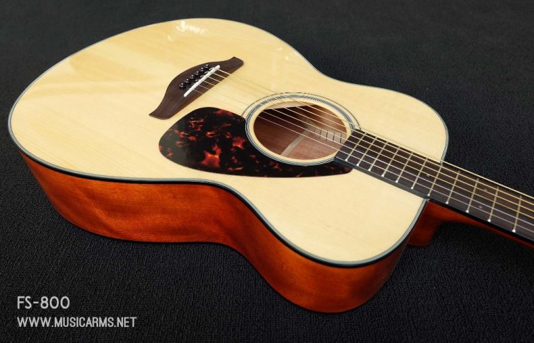 Yamaha FS800 แบรนด์กีต้าร์จากค่ายดัง เป็นรุ่นที่ขนาดบอดี้เป็นทรง concert ขนาดเล็กเหมาะพกพา คอเล็กจับง่าย ด้วยวัสดุดีไซส์ที่มีคุณภาพไม่ว่าจะเป็นไม้หน้าท็อปโซลิทสปรู๊ซ ให้โทนเสียงมีความใสกังวาน เสริมข้างเเละหลังด้วยไม้นาโต้เเละโอกูเม่ที่ให้โทนเสียงหนานุ่มละมุนขึ้น คอเล็กจับง่ายสบายมือ เล่นไเ้ทุกเเนวเพลงเเละทุกวัย อีกทั้งบอดี้ยังมีการเคลือบเงามาให้ง่ายต่อการเก็บรักษาอีกด้วย เรียกได้ว่าคุณภาพคุ้มค่ากับราคาสุดๆ