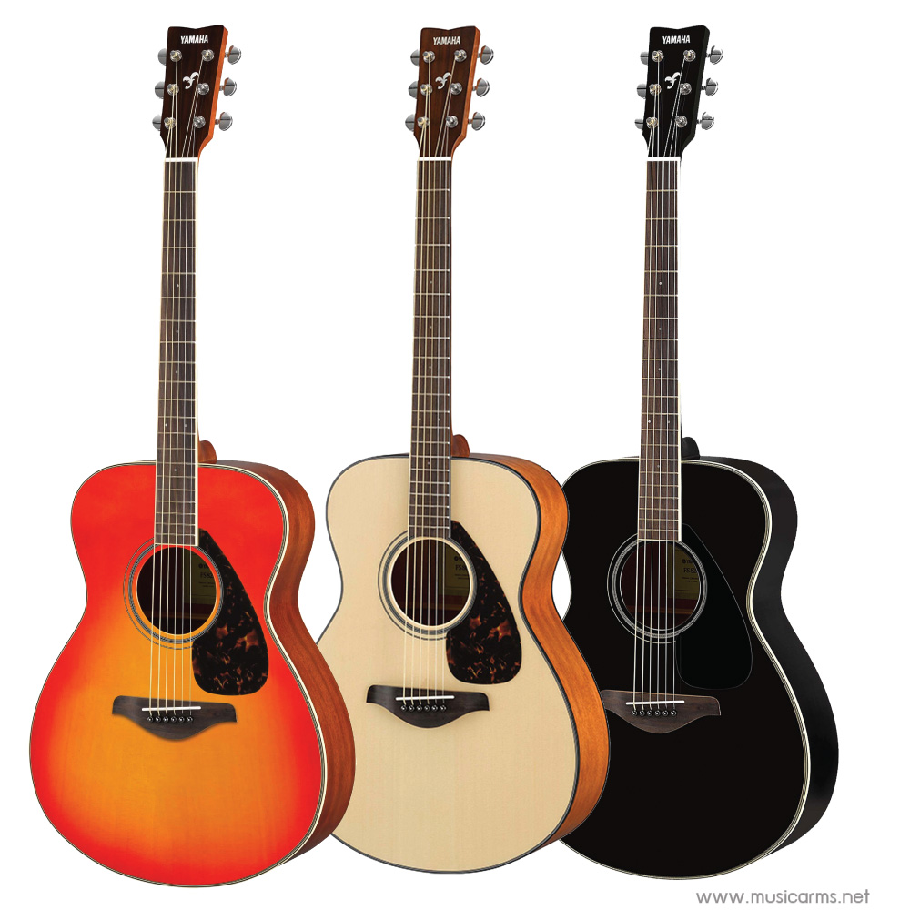 Yamaha FS820 กีต้าร์ไซส์เล็กมีขนาด 40 นิ้ว สะดวกต่อการพกพา และยังทำบอดี้เป็นทรง Concert ที่เล็กจนเล่นได้ง่าย แต่มีเสียงที่หนาเพราะบอดี้ทำจากไม้มะฮอกกานีที่มีคาแรคเตอร์เสียง นุ่มนวล ฟังแล้วอบอุ่น เหมาะกับดนตรีทุกแนวไม่ว่าจะตีคอร์ดหรือฟิงเกอร์สไตล์ ไม้หน้ายังเป็นท็อปโซลิดมะฮออกกานีหรือไม้แท้แผ่นเดียว ยิ่งนานไปกีต้าร์จะเสียงดีมากขึ้น คอทำจากไม้นาโต้ ให้ซาวด์นุ่มลึกแข็งแรงทนทาน วัสดุอื่นๆเลือกใช้ของเกรดพรีเมี่ยมไม่ว่าจะเป็น Nut และ Saddle หรือ ตัวลูกบิดรุ่น TM29T ชุบโครเมี่ยม ตกแต่งสวยงามด้วยลายซาวด์โฮลและปิ๊กการ์ดสีกระดองเต่า ใครชอบกีต้าร์ตัวเล็กๆ หรือชอบเดินทางต้องมีติดไว้ซักตัว