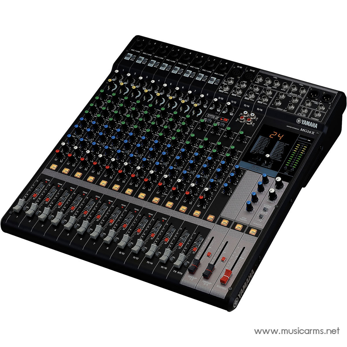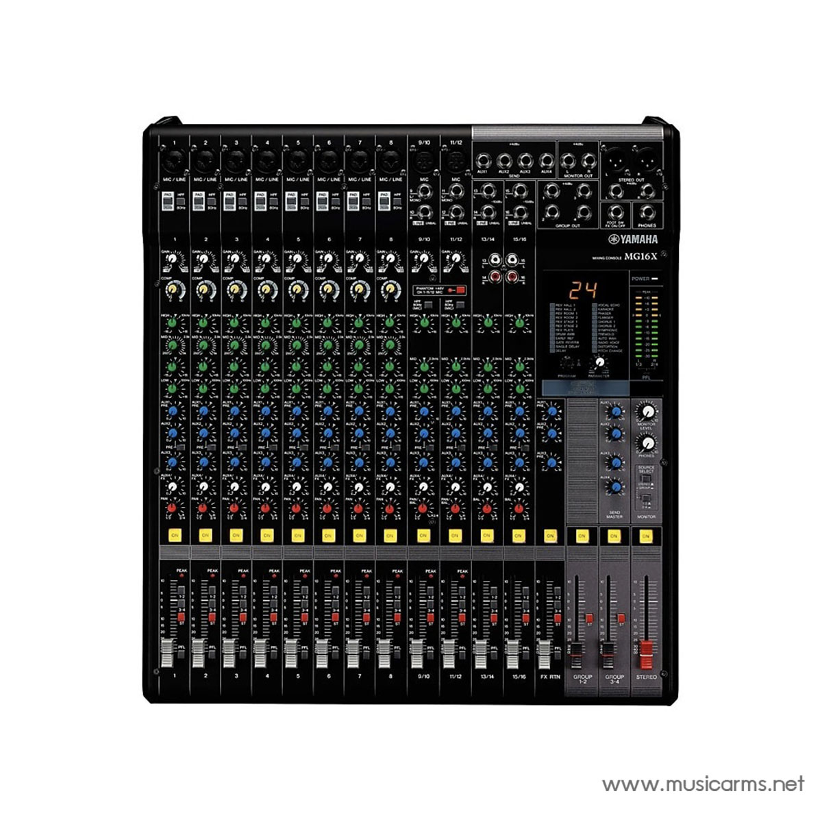 Yamaha MG16X เป็นมิกเซอร์ขนาดกะทัดรัด 16 อินพุต พร้อมเอฟเฟกต์ในตัว เหมาะสำหรับการแสดง, การบรรยาย, การบันทึกเสียง และการใช้งานที่คล้ายกัน มิกเซอร์นี้มีช่องสัญญาณอินพุตไมค์/ไลน์โมโนแปดช่อง, ช่องสัญญาณอินพุตไลน์สเตอริโอสองช่องที่สามารถใช้เป็นอินพุตไมค์หรือไลน์โมโนได้ (อินพุต XLR และ 1/4″ สเตอริโอ) และช่องสัญญาณอินพุตไลน์สเตอริโอสองช่องพร้อมแจ็ค 1/4″ และ RCA ช่องสัญญาณ 1 ถึง 12 แต่ละช่องมาพร้อมกับปรีแอมป์ไมค์ D-Pre, EQ 3 แบนด์, ตัวควบคุม Pan และ High-pass filter