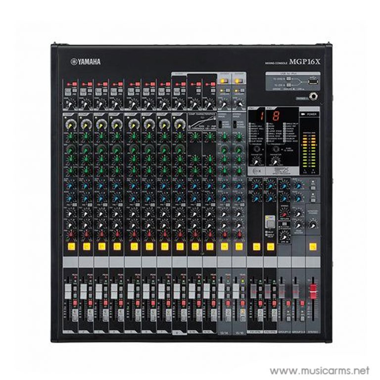 Yamaha MGP16X มิกเซอร์รุ่นใหญ่ไฟกระพริบกับช่องเสียบถึง 16 ช่อง แบ่งเป็นแบบโมโน 10 ช่องและสเตอริโอ 4 ช่อง นอกจากนี้ยังมีช่องเสียบระบบ FX สำหรับเชื่อมต่อเข้าเอฟเฟคโดยตรงได้อีกด้วย การต่อสัญญาณนั้นเป็นแบบ D-Pre ปรีแอมป์ ออกแบบวงจร Darlington แบบกลับหัว ช่วยให้ได้ซาวด์ที่ชัดเจน และยังมีระบบ -pressive EQ ช่วยเพิ่มความอบอุ่นในสไตล์ EQ คลาสสิก เอฟเฟคในตัวมากมายเฉพาะแค่รีเวิร์ปก็ 3 ระดับเข้าไปแล้ว แยกเป็นแบบ REV-X 8 แบบ และ SPX 24 แบบ สามารถเชื่อมต่อคอมพิวเตอรืได้ด้วยช่องเสียบ USB แบบ 24 บิท และยังรองรับระบบ iOS สำหรับโทรศัพท์ งานนี้ปาร์ตี้ไหนๆก็กลายเป็นเรื่องกล้วยๆทันที